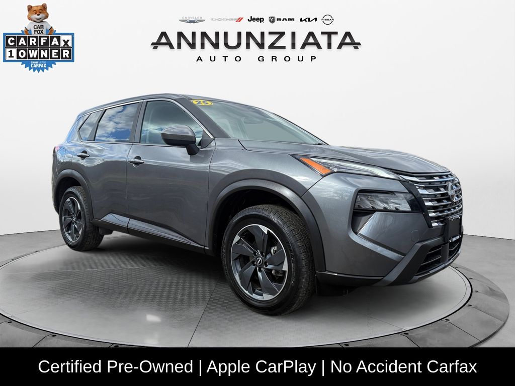 CARFAX One-Owner. Certified. Gun Metallic 2025 Nissan Rogue SV AWD 1.5L DOHC
