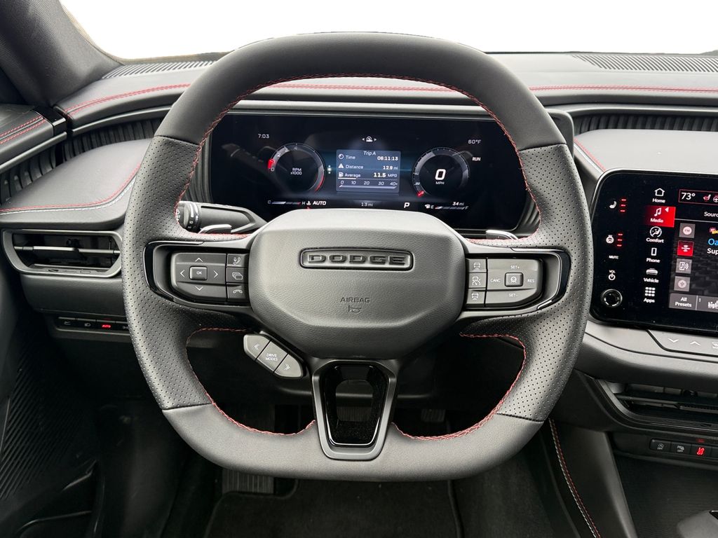 Blacktop Package (Dark Exterior Badging, Dual Rear Exhaust with Black Tips, and Wheels: 20" x 10" Dark Finish Aluminum), Quick Order Package 22P Scat Pack, Two Tone Paint Group, Wheel and Tire Package, AWD, Black Artificial Leather, 10 Speakers, 2-Way Manual Adjust Front Head Restraints, 2-Way Power Driver Lumbar Adjust, 4-Wheel Disc Brakes, 4G LTE Wi-Fi Hot Spot, 8-Way Power Driver Seat Adjust, ABS brakes, Active Noise Control System, Air Conditioning, Alloy wheels, AM/FM radio: SiriusXM w/360L, Apple CarPlay/Android Auto, Auto-dimming Rear-View mirror, Automatic temperature control, Black Seats, Brake assist, Bumpers: body-color, Compass, Connectivity - US/Canada, Delay-off headlights, Disassociated Touchscreen Display, Driver door bin, Driver vanity mirror, Dual front impact airbags, Dual front side impact airbags, Electronic Stability Control, Emergency communication system: Dodge Connect, Four wheel independent suspension, Front anti-roll bar, Front Bucket Seats, Front Center Armrest, Front dual zone A/C, Front License Plate Bracket, Front reading lights, Fully automatic headlights, Garage door transmitter, Heated door mirrors, Heated Exterior Mirrors, Heated Front Seats, Heated front seats, Heated steering wheel, Illuminated entry, Integrated Center Stack Radio, Knee airbag, Leather Shift Knob, Leatherette/Cloth Performance Seats, Low Back Bucket Seats, Low tire pressure warning, Manufacturer's Statement of Origin, MyFlexCare Service Plan, Occupant sensing airbag, Outside temperature display, Overhead airbag, Overhead console, Panic alarm, ParkView Rear Back-Up Camera, Passenger door bin, Passenger vanity mirror, Power Adjust Mirrors, Power door mirrors, Power driver seat, Power steering, Power windows, Radio data system, Radio: Uconnect 5 with 12.3" Display, Rear anti-roll bar, Rear reading lights, Rear seat center armrest, Rear window defroster, Remote keyless entry, Security system, Speed control, Split folding rear seat, Spoiler, Sport steering wheel, Steering wheel mounted audio controls, Tachometer, Telescoping steering wheel, Tilt steering wheel, Traction control, Trip computer, Variably intermittent wipers, Wheels: 20" x 10" Aluminum, Wheels: 20" x 11" Black Aluminum, Wireless Apple CarPlay, and Wireless Google Android Auto.