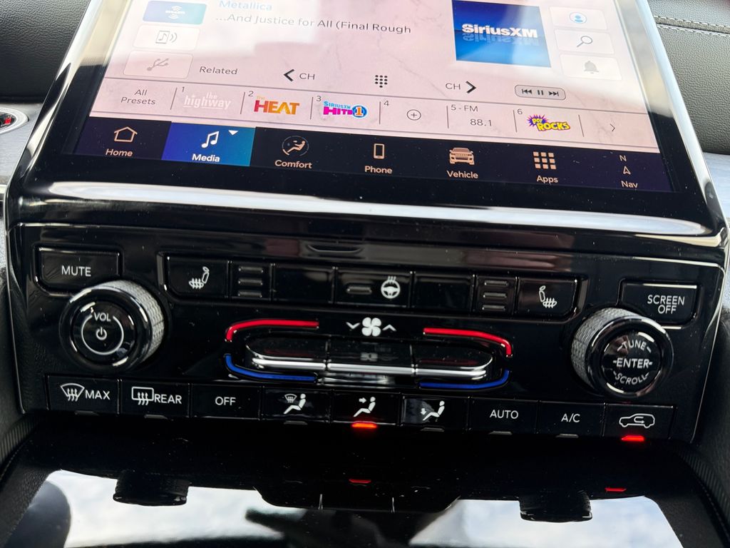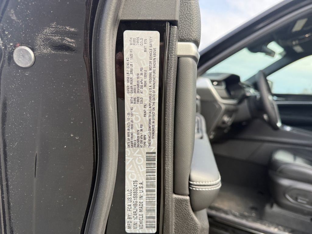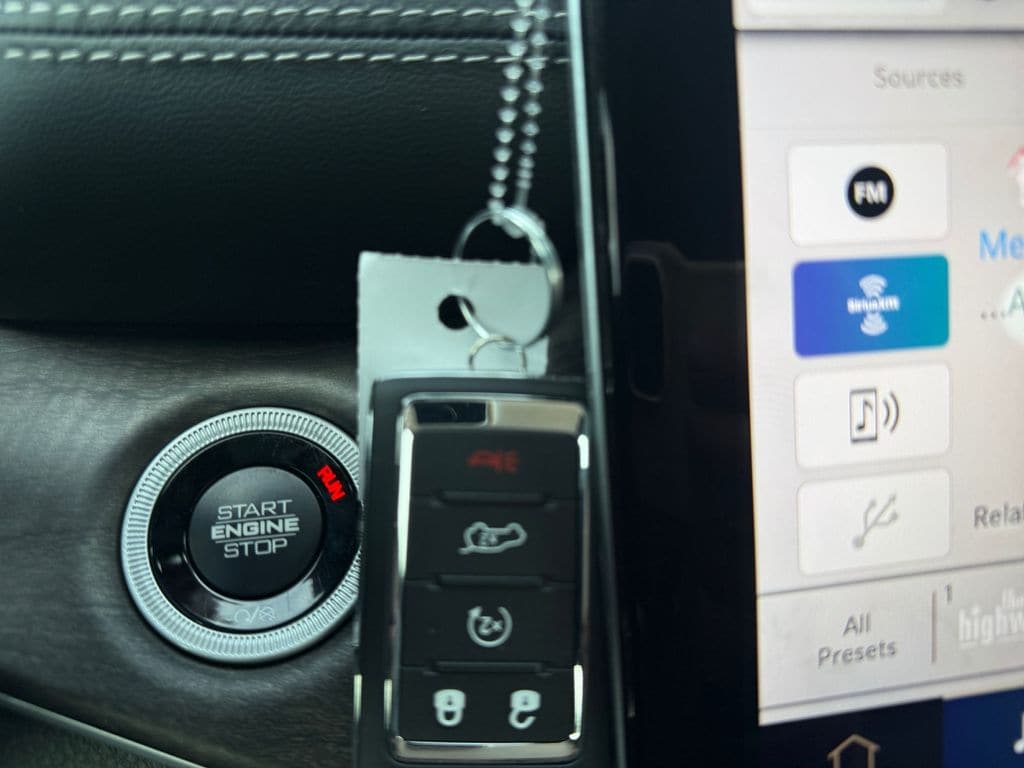Black Appearance Package (Gloss Black Exterior Accents and Wheels: 20" x 8.5" Gloss Black Painted Aluminum), Quick Order Package 22E, 4WD, 4-Wheel Disc Brakes, 6 Speakers, ABS brakes, Active Noise Control System, Air Conditioning, Alloy wheels, AM/FM radio: SiriusXM with 360L, Anti-whiplash front head restraints, Audio memory, Auto High-beam Headlights, Automatic temperature control, Brake assist, Bumpers: body-color, Capri Leatherette Seats, Compass, Delay-off headlights, Driver door bin, Driver vanity mirror, Dual front impact airbags, Dual front side impact airbags, Electronic Stability Control, Emergency communication system, Four wheel independent suspension, Front anti-roll bar, Front Bucket Seats, Front Center Armrest w/Storage, Front dual zone A/C, Front fog lights, Front License Plate Bracket, Front reading lights, Fully automatic headlights, Garage door transmitter, Heated door mirrors, Heated front seats, Heated rear seats, Heated steering wheel, Illuminated entry, Knee airbag, Low tire pressure warning, Memory seat, Model Year Tracking, Navigation System, Normal Duty Suspension, Occupant sensing airbag, Outside temperature display, Overhead airbag, Overhead console, Panic alarm, ParkView Rear Back-Up Camera, Passenger door bin, Passenger vanity mirror, Power door mirrors, Power driver seat, Power Liftgate, Power passenger seat, Power steering, Power windows, Radio data system, Radio: Uconnect 5 Nav with 10.1" Display, Rear anti-roll bar, Rear reading lights, Rear window defroster, Rear window wiper, Remote keyless entry, Security system, Speed control, Speed-Sensitive Wipers, Split folding rear seat, Spoiler, Steering wheel mounted audio controls, Tachometer, Telescoping steering wheel, Tilt steering wheel, Traction control, Trip computer, Turn signal indicator mirrors, Variably intermittent wipers, Voltmeter, and Wheels: 18" x 8" Polished/Painted Aluminum.