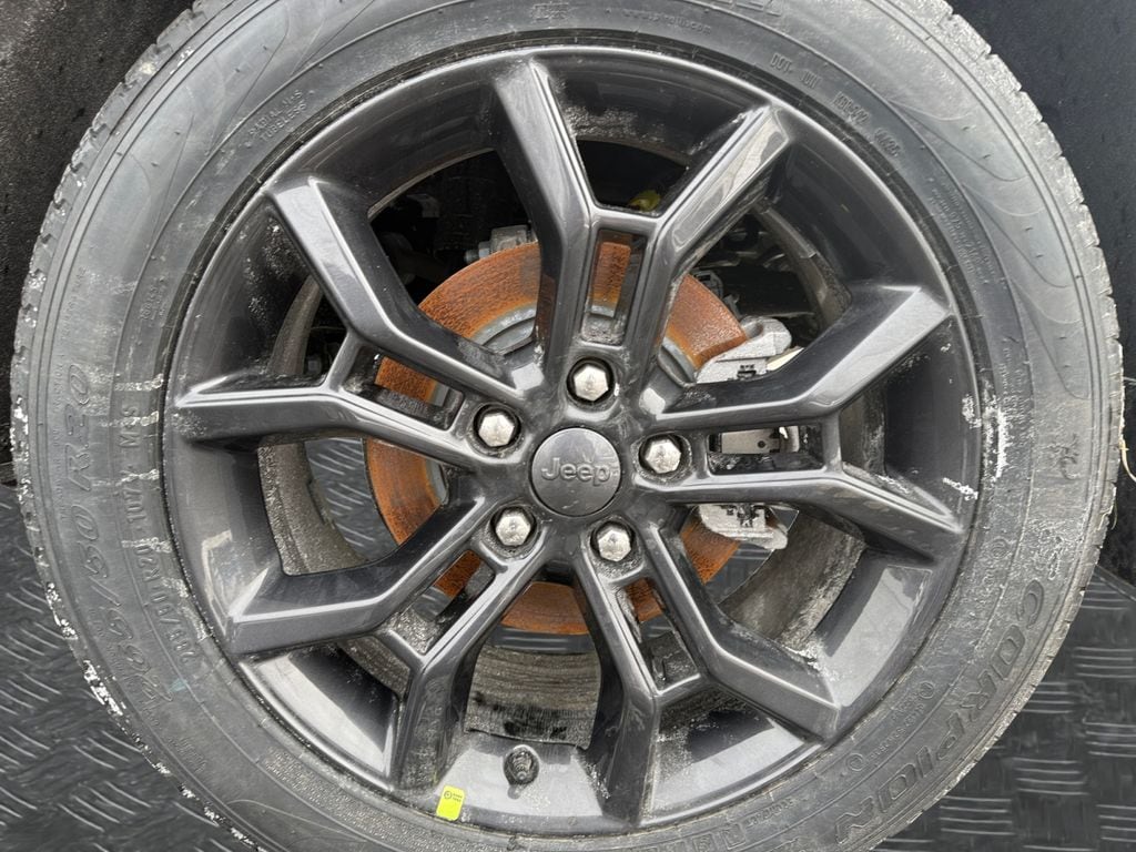 Blackout Model (Black Painted Roof, Delete Limited Badge, Dual-Pane Panoramic Sunroof, Gloss Black Exterior Accents, and Wheels: 20" x 8.5" Black Painted Aluminum), MOPAR Finishing Package (MOPAR Front Splash Guards, MOPAR Paint Protection Film, and MOPAR Rear Splash Guards with Jeep Logo), Quick Order Package 22E, 4WD, 4-Wheel Disc Brakes, 6 Speakers, ABS brakes, Active Noise Control System, Air Conditioning, Alloy wheels, AM/FM radio: SiriusXM with 360L, Anti-whiplash front head restraints, Audio memory, Auto High-beam Headlights, Automatic temperature control, Brake assist, Bumpers: body-color, Capri Leatherette Seats, Compass, Delay-off headlights, Driver door bin, Driver vanity mirror, Dual front impact airbags, Dual front side impact airbags, Electronic Stability Control, Emergency communication system, Four wheel independent suspension, Front anti-roll bar, Front Bucket Seats, Front Center Armrest w/Storage, Front dual zone A/C, Front fog lights, Front License Plate Bracket, Front reading lights, Fully automatic headlights, Garage door transmitter, Heated door mirrors, Heated front seats, Heated rear seats, Heated steering wheel, Illuminated entry, Knee airbag, Low tire pressure warning, Memory seat, Model Year Tracking, Navigation System, Normal Duty Suspension, Occupant sensing airbag, Outside temperature display, Overhead airbag, Overhead console, Panic alarm, ParkView Rear Back-Up Camera, Passenger door bin, Passenger vanity mirror, Power door mirrors, Power driver seat, Power Liftgate, Power passenger seat, Power steering, Power windows, Radio data system, Radio: Uconnect 5 Nav with 10.1" Display, Rear anti-roll bar, Rear reading lights, Rear window defroster, Rear window wiper, Remote keyless entry, Security system, Speed control, Speed-Sensitive Wipers, Split folding rear seat, Spoiler, Steering wheel mounted audio controls, Tachometer, Telescoping steering wheel, Tilt steering wheel, Traction control, Trip computer, Turn signal indicator mirrors, Variably intermittent wipers, Voltmeter, and Wheels: 18" x 8" Polished/Painted Aluminum.