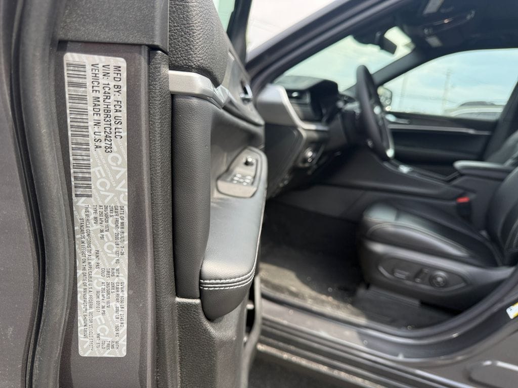 Limited Altitude Package (Delete Limited Badge, Dual-Pane Panoramic Sunroof, Exterior Accents Dark Neutral Metallic, and Wheels: 20" x 8.5" Gloss Black Painted Aluminum), MOPAR Finishing Package (MOPAR Front Splash Guards, MOPAR Paint Protection Film, and MOPAR Rear Splash Guards with Jeep Logo), Quick Order Package 2BE Limited, 4WD, 10 Speakers, 3.70 Rear Axle Ratio, 4-Wheel Disc Brakes, 4G LTE Wi-Fi Hot Spot, ABS brakes, Active Noise Control System, Air Conditioning, Alloy wheels, AM/FM radio: SiriusXM with 360L, Anti-whiplash front head restraints, Apple CarPlay, AppLink/Apple CarPlay and Android Auto, Audio memory, Auto High-beam Headlights, Automatic temperature control, Auxiliary Battery, Brake assist, Bumpers: body-color, Capri Leatherette Seats, Compass, Connectivity - US/Canada, Delay-off headlights, Disassociated Touchscreen Display, Driver door bin, Driver vanity mirror, Dual front impact airbags, Dual front side impact airbags, Electronic Stability Control, Emergency communication system, For Details, Visit DriveUconnect.com, Four wheel independent suspension, Front anti-roll bar, Front Bucket Seats, Front Center Armrest w/Storage, Front dual zone A/C, Front fog lights, Front License Plate Bracket, Front reading lights, Fully automatic headlights, Garage door transmitter, Global Telematics Box Module (TBM), Gloss Black Exterior Mirrors, Google Android Auto, GPS Antenna Input, Heated door mirrors, Heated Exterior Mirrors, Heated front seats, Heated rear seats, Heated steering wheel, Illuminated entry, Integrated Center Stack Radio, Integrated Voice Command with Bluetooth, Knee airbag, Low tire pressure warning, Manual Folding Exterior Mirrors, Memory seat, MyFlexCare Service Plan, Navigation System, Normal Duty Suspension, Occupant sensing airbag, Outside temperature display, Overhead airbag, Overhead console, Panic alarm, ParkView Rear Back-Up Camera, Passenger door bin, Passenger vanity mirror, Power door mirrors, Power driver seat, Power Liftgate, Power passenger seat, Power steering, Power windows, Radio data system, Radio: Uconnect 5 Nav with 12.3" Display, Rear anti-roll bar, Rear reading lights, Rear window defroster, Rear window wiper, Remote keyless entry, Security system, Speed control, Speed-Sensitive Wipers, Split folding rear seat, Spoiler, Steering wheel mounted audio controls, Tachometer, Telescoping steering wheel, Tilt steering wheel, Traction control, Trip computer, Turn signal indicator mirrors, USB Host Flip, Variably intermittent wipers, Voltmeter, and Wheels: 18" x 8.0" Polished/Painted AluminuM.