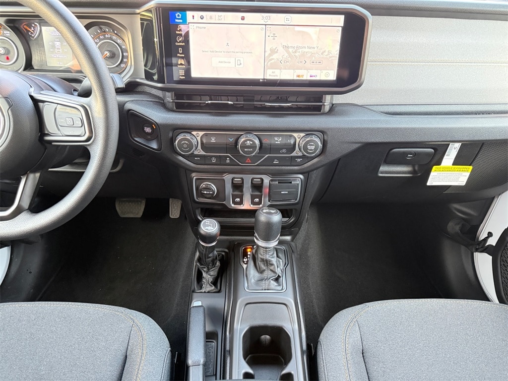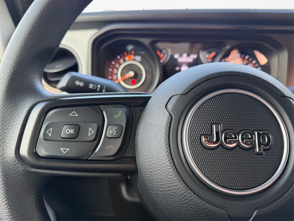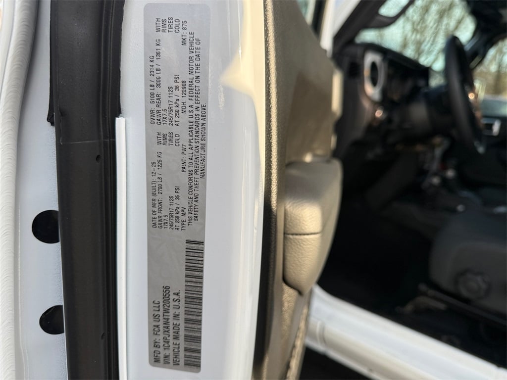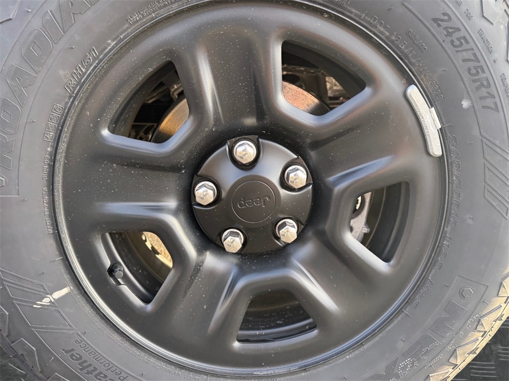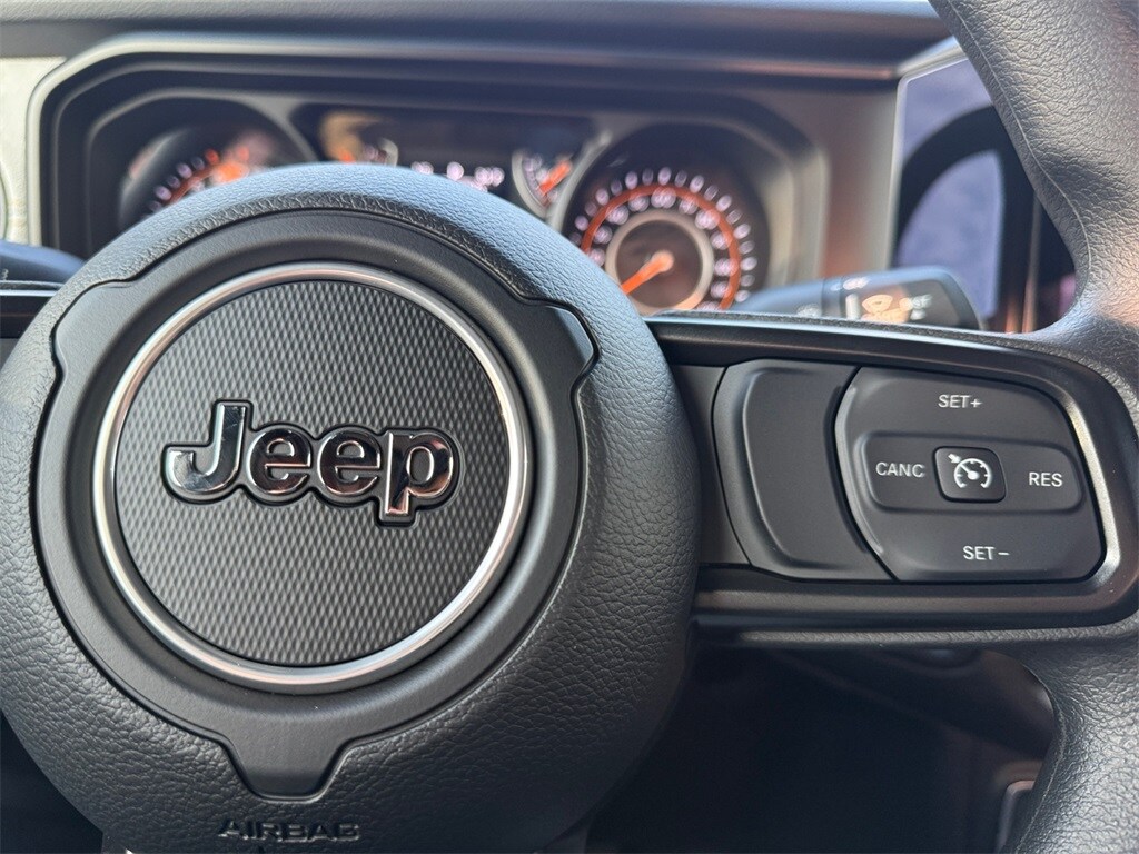 Quick Order Package 22B Sport, 12.3" Touchscreen Display, 3.45 Overall Top Gear Ratio, 4-Wheel Disc Brakes, 4G LTE Wi-Fi Hot Spot, 8 Speakers, ABS brakes, Air Conditioning, AM/FM radio: SiriusXM with 360L, Apple CarPlay, Apple CarPlay/Android Auto, Aux Battery, Brake assist, Cloth Low-Back Bucket Seats, Compass, Connectivity - US/Canada, Deep Tint Sunscreen Windows, Delay-off headlights, Driver door bin, Driver vanity mirror, Dual front impact airbags, Dual front side impact airbags, Electronic Stability Control, For More Info, Call 800-643-2112, Front anti-roll bar, Front Bucket Seats, Front Center Armrest w/Storage, Front fog lights, Front reading lights, Google Android Auto, Illuminated entry, Integrated Center Stack Radio, Integrated roll-over protection, Jeep Trail Rated Kit, Low tire pressure warning, MOPAR All-Weather Floor Mats, Myflexcare Service Plan, Non-Lock Fuel Cap Without Discriminator, Normal Duty Suspension, Occupant sensing airbag, Outside temperature display, Overhead airbag, Panic alarm, ParkView Rear Back-Up Camera, Passenger door bin, Passenger vanity mirror, Power steering, Power windows, Radio data system, Radio: Uconnect 5 with 12.3" Display, Rear anti-roll bar, Rear reading lights, Remote keyless entry, SiriusXM Radio Service, SiriusXM with 360L, Speed control, Steering wheel mounted audio controls, Stop-Start Dual Battery System, Tachometer, Telescoping steering wheel, Tilt steering wheel, Traction control, Trip computer, Variably intermittent wipers, and Wheels: 17" x 7.5" Black Steel Styled.