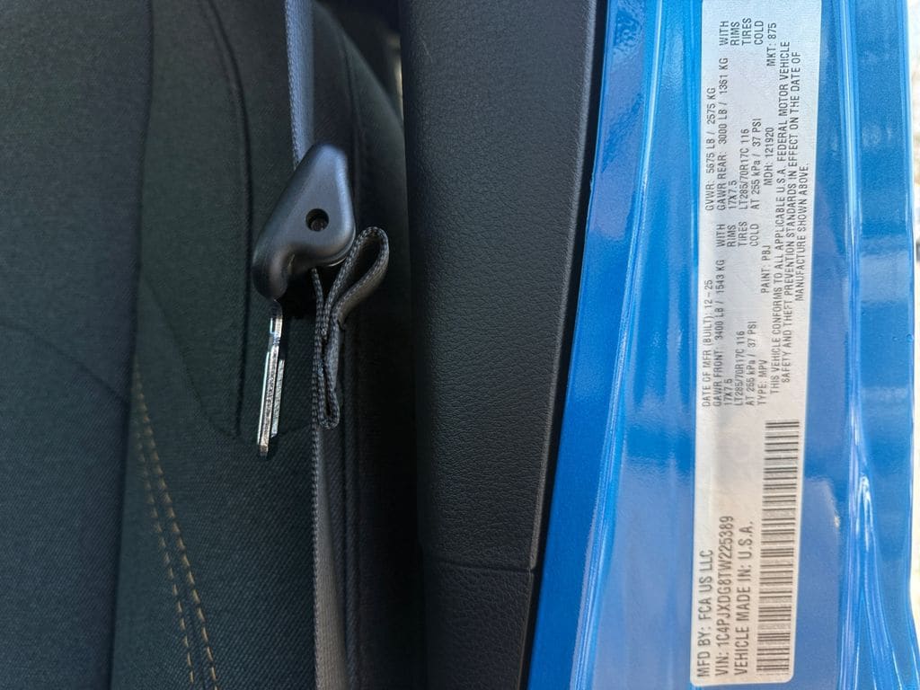 Convenience Group (2-Door Passive Entry, Front Door Locks, Air Conditioning with Auto Temp Control, Air Filtering, Cluster 7.0" TFT Color Display, Emergency/Assistance Call, Heated Front Seats, Heated Steering Wheel, and Universal Garage Door Opener), Quick Order Package 24W Willys (4-Wheel Drive Swing Gate Decal, 7 and 4 Pin Wiring Harness, Advanced Brake Assist, Automatic Headlamps, Auxiliary Switches, Black Grille with Gloss Black Rings, Class II Receiver Hitch, Conventional Differential Front Axle, Corning Gorilla Glass, Dana M210 Wide HD Tube Front Axle, Dana M220 Wide Rear Axle, Daytime Running Lamps LED Accents, Deep Tint Sunscreen Windows, E-Locker Rear Axle, Enhanced Adaptive Cruise Control, Front LED Fog Lamps, Full Speed Forward Collision Warning Plus, Increased Travel Export Tuned Suspension, Injection Molded Black Rear Bumper, LED Premium Reflector Headlamps, Mold in Color Bumper with Gloss Black, Molded in Color Rubicon Highline Flare, MOPAR All-Weather Floor Mats, Off-Road Plus Mode, Power Heated Mirrors, Premium Wrapped Steering Wheel, Security Alarm, Sun Visors with Illuminated Vanity Mirrors, Wheels: 17" x 7.5" Painted Black, and Willys Hood Decal), Steel Power Dome Hood Package (Power Dome Dual Vented Hood), Trailer Tow and Auxiliary Switch Group, 12.3" Touchscreen Display, 4-Wheel Disc Brakes, 4G LTE Wi-Fi Hot Spot, 8 Speakers, ABS brakes, Air Conditioning, AM/FM radio: SiriusXM with 360L, Apple CarPlay, Apple CarPlay/Android Auto, Aux Battery, Black 3-Piece Hard Top, Brake assist, Compass, Connectivity - US/Canada, Delay-off headlights, Driver door bin, Driver vanity mirror, Dual front impact airbags, Dual front side impact airbags, Electronic Stability Control, For More Info, Call 800-643-2112, Freedom Panel Storage Bag, Front anti-roll bar, Front Bucket Seats, Front Center Armrest w/Storage, Front fog lights, Front reading lights, Google Android Auto, Illuminated entry, Integrated Center Stack Radio, Integrated roll-over protection, Jeep Trail Rated Kit, Low tire pressure warning, Myflexcare Service Plan, No Soft Top, Non-Lock Fuel Cap Without Discriminator, Normal Duty Suspension, Occupant sensing airbag, Outside temperature display, Overhead airbag, Panic alarm, ParkView Rear Back-Up Camera, Passenger door bin, Passenger vanity mirror, Power steering, Power windows, Radio data system, Radio: Uconnect 5 with 12.3" Display, Rear anti-roll bar, Rear reading lights, Rear Window Defroster, Rear Window Wiper/Washer, Remote keyless entry, SiriusXM Radio Service, SiriusXM with 360L, Speed control, Split folding rear seat, Steering wheel mounted audio controls, Stop-Start Dual Battery System, Tachometer, Telescoping steering wheel, Tilt steering wheel, Traction control, Trip computer, Variably intermittent wipers, and Wheels: 17" x 7.5" Black Steel Styled.