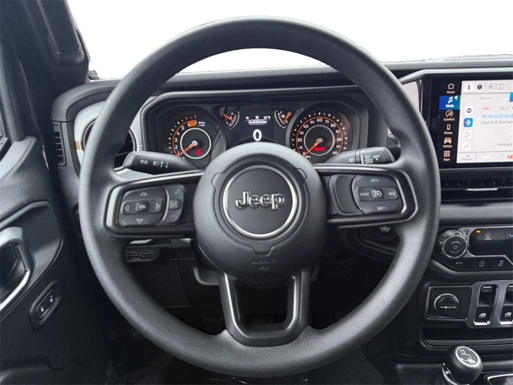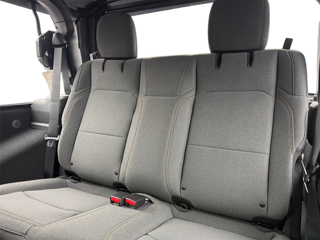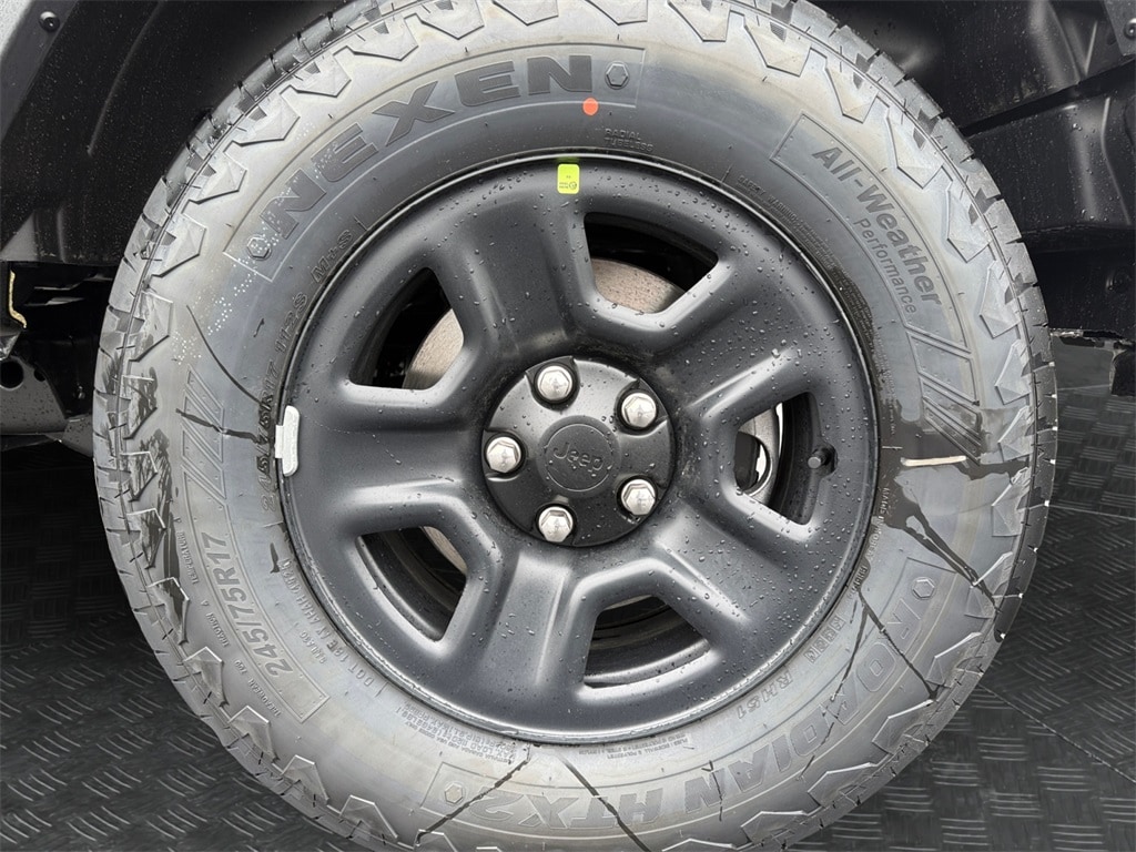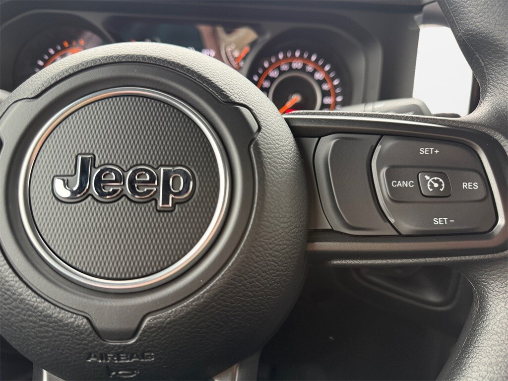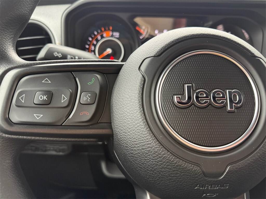 Quick Order Package 23B Sport, 12.3" Touchscreen Display, 3.45 Overall Top Gear Ratio, 4-Wheel Disc Brakes, 4G LTE Wi-Fi Hot Spot, 8 Speakers, ABS brakes, Air Conditioning, AM/FM radio: SiriusXM with 360L, Apple CarPlay, Apple CarPlay/Android Auto, Aux Battery, Brake assist, Cloth Low-Back Bucket Seats, Compass, Connectivity - US/Canada, Delay-off headlights, Driver door bin, Driver vanity mirror, Dual front impact airbags, Dual front side impact airbags, Electronic Stability Control, For More Info, Call 800-643-2112, Front anti-roll bar, Front Bucket Seats, Front Center Armrest w/Storage, Front fog lights, Front reading lights, Google Android Auto, Illuminated entry, Integrated Center Stack Radio, Integrated roll-over protection, Jeep Trail Rated Kit, Low tire pressure warning, MOPAR All-Weather Floor Mats, Myflexcare Service Plan, Non-Lock Fuel Cap Without Discriminator, Normal Duty Suspension, Occupant sensing airbag, Outside temperature display, Overhead airbag, Panic alarm, ParkView Rear Back-Up Camera, Passenger door bin, Passenger vanity mirror, Power steering, Power windows, Radio data system, Radio: Uconnect 5 with 12.3" Display, Rear anti-roll bar, Rear reading lights, Remote keyless entry, SiriusXM Radio Service, SiriusXM with 360L, Speed control, Steering wheel mounted audio controls, Stop-Start Dual Battery System, Tachometer, Telescoping steering wheel, Tilt steering wheel, Traction control, Trip computer, Variably intermittent wipers, and Wheels: 17" x 7.5" Black Steel Styled.