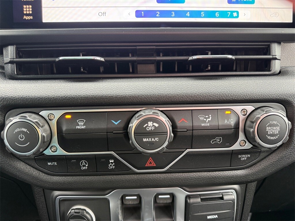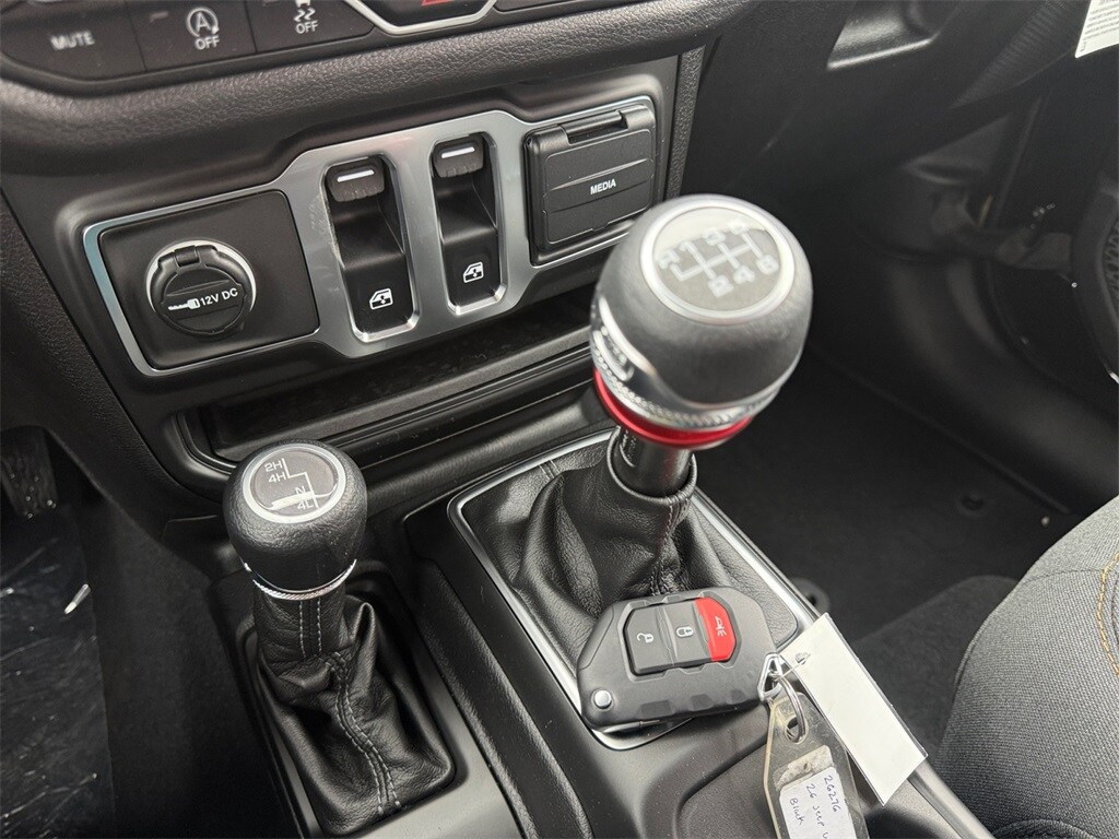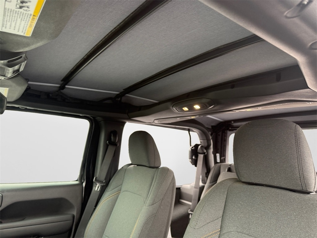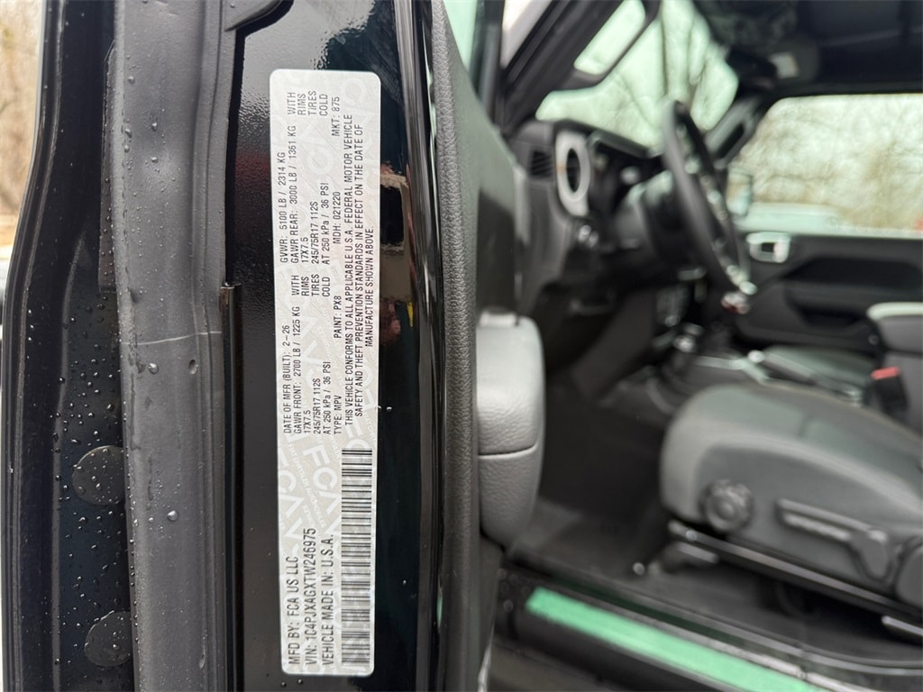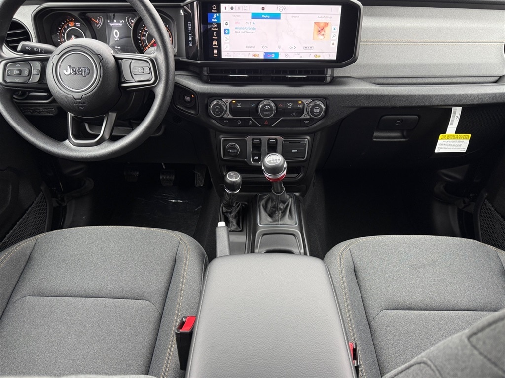Quick Order Package 23B Sport, 12.3" Touchscreen Display, 3.45 Overall Top Gear Ratio, 4-Wheel Disc Brakes, 4G LTE Wi-Fi Hot Spot, 8 Speakers, ABS brakes, Air Conditioning, AM/FM radio: SiriusXM with 360L, Apple CarPlay, Apple CarPlay/Android Auto, Aux Battery, Brake assist, Cloth Low-Back Bucket Seats, Compass, Connectivity - US/Canada, Delay-off headlights, Driver door bin, Driver vanity mirror, Dual front impact airbags, Dual front side impact airbags, Electronic Stability Control, For More Info, Call 800-643-2112, Front anti-roll bar, Front Bucket Seats, Front Center Armrest w/Storage, Front fog lights, Front reading lights, Google Android Auto, Illuminated entry, Integrated Center Stack Radio, Integrated roll-over protection, Jeep Trail Rated Kit, Low tire pressure warning, MOPAR All-Weather Floor Mats, Myflexcare Service Plan, Non-Lock Fuel Cap Without Discriminator, Normal Duty Suspension, Occupant sensing airbag, Outside temperature display, Overhead airbag, Panic alarm, ParkView Rear Back-Up Camera, Passenger door bin, Passenger vanity mirror, Power steering, Power windows, Radio data system, Radio: Uconnect 5 with 12.3" Display, Rear anti-roll bar, Rear reading lights, Remote keyless entry, SiriusXM Radio Service, SiriusXM with 360L, Speed control, Steering wheel mounted audio controls, Stop-Start Dual Battery System, Tachometer, Telescoping steering wheel, Tilt steering wheel, Traction control, Trip computer, Variably intermittent wipers, and Wheels: 17" x 7.5" Black Steel Styled.