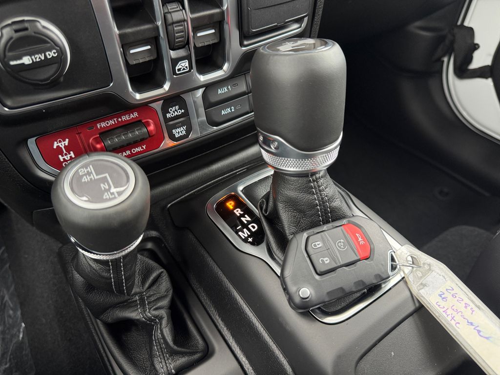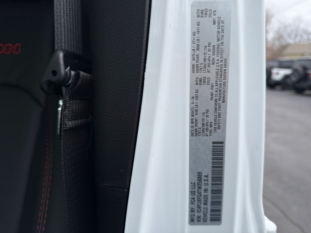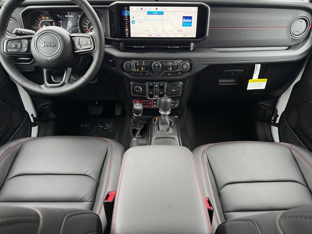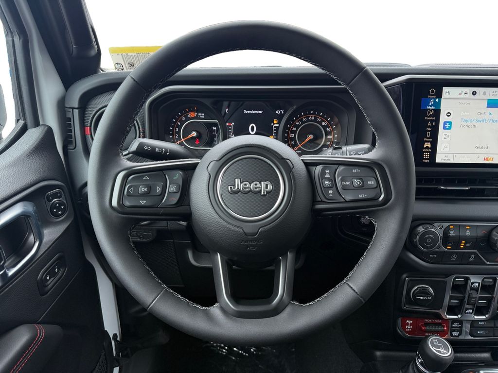 Convenience Group (Heated Front Seats, Heated Steering Wheel, and Universal Garage Door Opener), Quick Order Package 24R Rubicon, Steel Bumper Group (Steel Front Bumper and Steel Rear Bumper), Steel Performance Hood Package (Performance Hood), Technology Group (12.3" Touchscreen Display, 4G LTE Wi-Fi Hot Spot, Apple CarPlay, Auto-Dimming Rear-View Mirror, Connected Travel and Traffic Services, Connectivity - US/Canada, For More Info, Call 800-643-2112, Google Android Auto, GPS Navigation, HD Radio, Integrated Center Stack Radio, Integrated Off-Road Camera, Integrated Voice Command with Bluetooth, Radio: Uconnect 5 Navigation with 12.3" Display, SiriusXM Radio Service, and SiriusXM with 360L), 4-Wheel Disc Brakes, 4.10 Rear Axle Ratio, 8 Speakers, ABS brakes, Air Conditioning, Alloy wheels, Alpine Premium Audio System, AM/FM radio: SiriusXM with 360L, Apple CarPlay/Android Auto, Automatic temperature control, Aux Battery, Auxiliary Switches, Black 3-Piece Hard Top, Brake assist, Class II Receiver Hitch, Cloth Low-Back Bucket Seats, Compass, Delay-off headlights, Driver door bin, Driver vanity mirror, Dual front impact airbags, Dual front side impact airbags, Electronic Stability Control, Emergency communication system: Jeep Connect, Freedom Panel Storage Bag, Front anti-roll bar, Front Bucket Seats, Front Center Armrest w/Storage, Front dual zone A/C, Front fog lights, Front License Plate Bracket, Front reading lights, Fully automatic headlights, Heated door mirrors, Illuminated entry, Integrated roll-over protection, Jeep Trail Rated Kit, Low tire pressure warning, MOPAR All-Weather Floor Mats, Myflexcare Service Plan, No Soft Top, Non-Lock Fuel Cap Without Discriminator, Occupant sensing airbag, Outside temperature display, Overhead airbag, Panic alarm, ParkView Rear Back-Up Camera, Passenger door bin, Passenger vanity mirror, Performance Suspension, Power door mirrors, Power steering, Power windows, Radio data system, Radio: Uconnect 5 with 12.3" Display, Rear anti-roll bar, Rear reading lights, Rear Window Defroster, Rear Window Wiper/Washer, Remote keyless entry, Security system, Speed control, Split folding rear seat, Steering wheel mounted audio controls, Stop-Start Dual Battery System, Tachometer, Telescoping steering wheel, Tilt steering wheel, Traction control, Trip computer, Variably intermittent wipers, Voltmeter, and Wheels: 17" x 7.5" Machined/Painted Black.