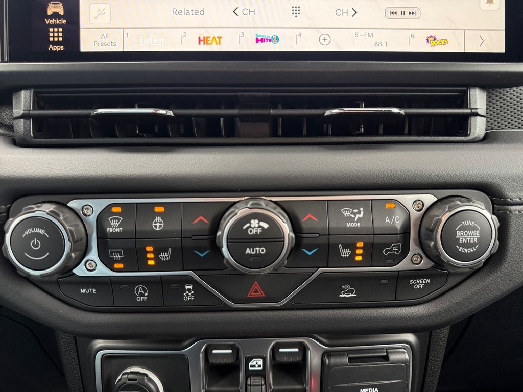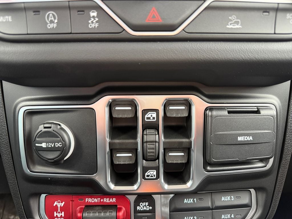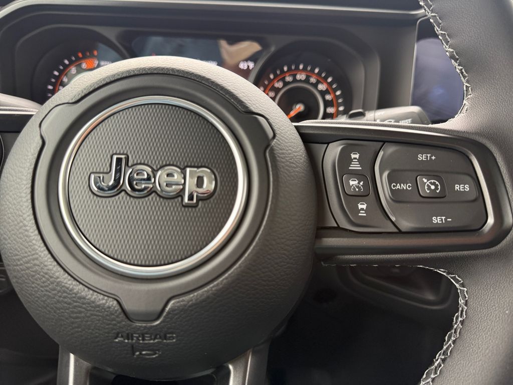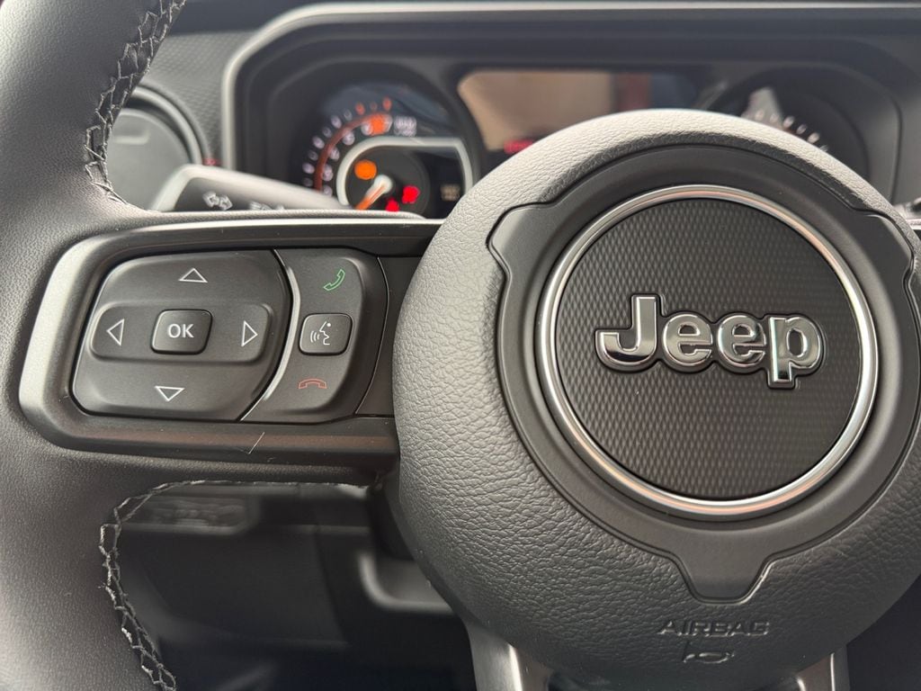 Convenience Group (Heated Front Seats, Heated Steering Wheel, and Universal Garage Door Opener), Quick Order Package 24R Rubicon, Steel Bumper Group (Steel Front Bumper and Steel Rear Bumper), Steel Performance Hood Package (Performance Hood), Technology Group (12.3" Touchscreen Display, 4G LTE Wi-Fi Hot Spot, Apple CarPlay, Auto-Dimming Rear-View Mirror, Connected Travel and Traffic Services, Connectivity - US/Canada, For More Info, Call 800-643-2112, Google Android Auto, GPS Navigation, HD Radio, Integrated Center Stack Radio, Integrated Off-Road Camera, Integrated Voice Command with Bluetooth, Radio: Uconnect 5 Navigation with 12.3" Display, SiriusXM Radio Service, and SiriusXM with 360L), 4-Wheel Disc Brakes, 4.10 Rear Axle Ratio, 8 Speakers, ABS brakes, Air Conditioning, Alloy wheels, Alpine Premium Audio System, AM/FM radio: SiriusXM with 360L, Apple CarPlay/Android Auto, Automatic temperature control, Aux Battery, Auxiliary Switches, Black 3-Piece Hard Top, Brake assist, Class II Receiver Hitch, Cloth Low-Back Bucket Seats, Compass, Delay-off headlights, Driver door bin, Driver vanity mirror, Dual front impact airbags, Dual front side impact airbags, Electronic Stability Control, Emergency communication system: Jeep Connect, Freedom Panel Storage Bag, Front anti-roll bar, Front Bucket Seats, Front Center Armrest w/Storage, Front dual zone A/C, Front fog lights, Front License Plate Bracket, Front reading lights, Fully automatic headlights, Heated door mirrors, Illuminated entry, Integrated roll-over protection, Jeep Trail Rated Kit, Low tire pressure warning, MOPAR All-Weather Floor Mats, Myflexcare Service Plan, No Soft Top, Non-Lock Fuel Cap Without Discriminator, Occupant sensing airbag, Outside temperature display, Overhead airbag, Panic alarm, ParkView Rear Back-Up Camera, Passenger door bin, Passenger vanity mirror, Performance Suspension, Power door mirrors, Power steering, Power windows, Radio data system, Radio: Uconnect 5 with 12.3" Display, Rear anti-roll bar, Rear reading lights, Rear Window Defroster, Rear Window Wiper/Washer, Remote keyless entry, Security system, Speed control, Split folding rear seat, Steering wheel mounted audio controls, Stop-Start Dual Battery System, Tachometer, Telescoping steering wheel, Tilt steering wheel, Traction control, Trip computer, Variably intermittent wipers, Voltmeter, and Wheels: 17" x 7.5" Machined/Painted Black.
