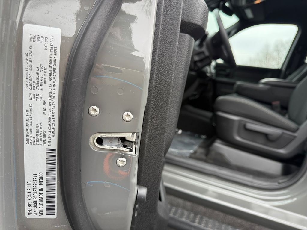 Bed Utility Group (LED Bed Lighting, MOPAR Deployable Bed Step, and MOPAR Spray in Bedliner), Quick Order Package 2UB Warlock (2 Way Rear Headrest Seat, 4 Way Front Headrests, 40/20/40 Split Bench Seat, Anti-Spin Differential Rear Axle, Auto Power-Folding Mirrors, Black Exterior Mirrors, Black Wheel Center Hub, Black Wheel Flares, Carpet Floor Covering, Cloth 40/20/40 Bench Seat, Exterior Mirrors Courtesy Lamps, Exterior Mirrors with Heating Element, Exterior Mirrors with Supplemental Signals, Forward and Reverse Utility Lights, Front Armrest with Cupholders, Front Performance Tuned Shock Absorbers, Hill Descent Control, Manual Adjust 4-Way Driver Seat, Manual Adjust 4-Way Front Passenger Seat, Mirror Running Lights, MOPAR Front and Rear Rubber Floor Mats, Power Adjust Mirrors, Power Heated Folding Telescopic Mirrors, Power Telescoping Mirrors, Power-Adjustable Convex Aux Mirrors, Rear Folding Seat, Rear Performance Tuned Shock Absorbers, Rear Wheelhouse Liners, Remote USB Port - Charge Only, Storage Tray, Warlock Decal, and Wheels: 20" x 8.0" Black Diamond Cut Aluminum), Tradesman Level 1 Equipment Group (115-Volt Auxiliary Front Power Outlet, 12" Touchscreen Display, 400W Inverter, 4G LTE Wi-Fi Hot Spot, Air Conditioning ATC with Dual Zone Control, Alexa Built-in, Apple CarPlay, Auto-Dimming Rear-View Mirror, Connected Travel and Traffic Services, Connectivity - US/Canada, Disassociated Touchscreen Display, Emergency Vehicle Alert System (EVAS), Exterior 115V AC Outlet, For Details, Visit DriveUconnect.com, For More Info, Call 800-643-2112, Global Telematics Box Module, Google Android Auto, GPS Antenna Input, GPS Navigation, HD Radio, Integrated Voice Command with Bluetooth, Off-Road Info Pages, Radio: Uconnect 5 Navigation with 12.0" Display, Rear Power Sliding Window, Selectable Tire Fill Alert, SiriusXM Radio Service, SiriusXM with 360L, Tinted Acoustic Windshield Glass, and Trailer Tow Pages), 4-Wheel Disc Brakes, 5th Wheel/Gooseneck Towing Prep Group, 6 Speakers, ABS brakes, Air Conditioning, AM/FM radio: SiriusXM, Apple CarPlay/Android Auto, Brake assist, Clearance Lamps, Compass, Dash Pass Thru Wire Circuits, Delay-off headlights, Driver door bin, Dual front impact airbags, Dual front side impact airbags, Electronic Stability Control, Front anti-roll bar, Front Center Armrest w/Storage, Front fog lights, Front License Plate Bracket, Front reading lights, Fully automatic headlights, Illuminated entry, Instrument Panel Mounted Auxiliary Switches, Low tire pressure warning, Manual Folding Exterior Mirrors, Manual Telescoping Mirrors, Mopar Black Tubular Side Steps, MyFlexCare Service Plan, Occupant sensing airbag, Outside temperature display, Overhead airbag, Overhead console, Panic alarm, ParkView Rear Back-Up Camera, Passenger door bin, Passenger vanity mirror, Power steering, Power windows, Radio data system, Radio: Uconnect 5 with 8.4" Display, Rear anti-roll bar, Rear step bumper, Rear window defroster, Remote keyless entry, Speed control, Tachometer, Tilt steering wheel, Traction control, Variably intermittent wipers, Voltmeter, and Wheels: 17" x 7.5" Black Steel StyleD.