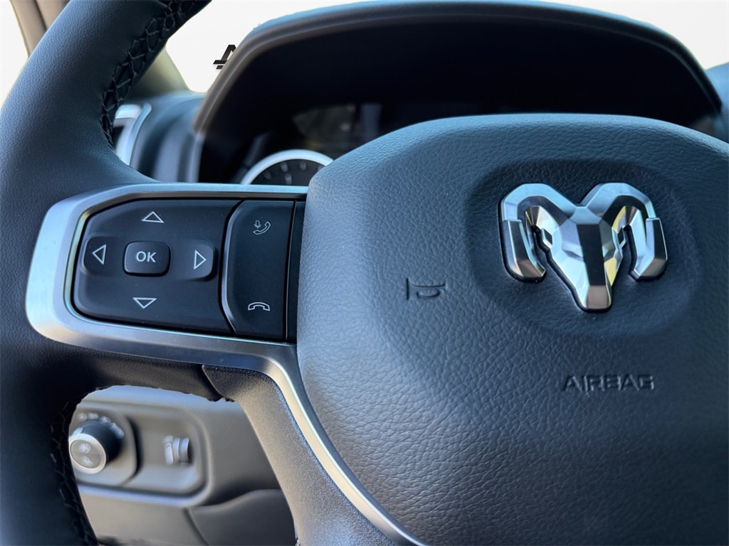 Big Horn Level 2 Plus Equipment Group (115-Volt Auxiliary Front Power Outlet, 115V Auxiliary Rear Power Outlet, 12" Touchscreen Display, 2 Way Rear Headrest Seat, 2nd Row in Floor Storage Bins, 4 Way Front Headrests, 400W Inverter, 4G LTE Wi-Fi Hot Spot, 9 Alpine Speakers with Subwoofer, Active Lane Management System, Adaptive Steering System, Air Conditioning ATC with Dual Zone Control, Alexa Built-in, Anti-Spin Differential Rear Axle, Apple CarPlay, Auto High Beam Headlamp Control, Auto Power-Folding Mirrors, Auto-Dimming Rear-View Mirror, Black Exterior Mirrors, Blind Spot and Cross Path Detection, Bucket Seats, Center Stop Lamp with Cargo View Camera, Cluster 7.0" TFT Color Display, Connected Travel and Traffic Services, Connectivity - US/Canada, Dampened Tailgate, Disassociated Touchscreen Display, Drowsy Driver Detection, Dual Glove Boxes, Dual Wireless Charging Pad, Emergency Vehicle Alert System (EVAS), Exterior 115V AC Outlet, Exterior Mirrors Courtesy Lamps, Exterior Mirrors with Heating Element, Exterior Mirrors with Supplemental Signals, Foam Bottle Insert (door Trim Panel), Folding Flat Load Floor Storage, Footwell Courtesy Lamp, For Details, Visit DriveUconnect.com, For More Info, Call 800-643-2112, Forward and Reverse Utility Lights, Front Seat Back Map Pockets, Full Length Upgraded Floor Console, Global Telematics Box Module, Glove Box Lamp, Google Android Auto, GPS Antenna Input, GPS Navigation, HD Radio, Heated Front Seats, Heated Steering Wheel, Integrated Voice Command with Bluetooth, LED Bed Lighting, LED Tail Lamps, Locking Lower Glove Box, Luxury Steering Wheel, Manual Adjust 4-Way Front Passenger Seat, Media Hub with 2 Charge Only USBs, Mirror Running Lights, MOPAR Deployable Bed Step, MOPAR Spray in Bedliner, MOPAR Trailer Camera Wiring with No Camera, Off-Road Info Pages, Power 2-Way Driver Lumbar Adjust, Power Adjust 8-Way Driver Seat, Power Adjust Mirrors, Power Adjustable Pedals, Power Heated Folding Telescopic Mirrors, Power Telescoping Mirrors, Power-Adjustable Convex Aux Mirrors, Premium Cloth Bucket Seats, Radio: Uconnect 5 Navigation with 12.0" Display, Rain Sensitive Windshield Wipers, Rear 60/40 Folding Seat, Rear Dome with on/Off Switch Lamp, Rear Power Sliding Window, Red Tail Lamp Bezels, Remote Start System, Selectable Tire Fill Alert, SiriusXM Radio Service, SiriusXM with 360L, Steering Wheel Mounted Audio Controls, Sun Visors with Illuminated Vanity Mirrors, Surround View Camera System, Traffic Sign Recognition, Trailer Reverse Guidance, Trailer Tire Pressure Monitoring System, Trailer Tow Pages, and Universal Garage Door Opener), Cold Weather Group (Engine Block Heater and MOPAR Winter Front Grille Cover), Quick Order Package 24Z Big Horn, Sport Appearance Package (Black Interior Accents, Body Color Grille-Surround, Painted Front Bumper, Painted Rear Bumper, and Sport Decal), 4-Wheel Disc Brakes, 40/20/40 Split Bench Seat, 5th Wheel/Gooseneck Towing Prep Group, 6 Speakers, ABS brakes, Air Conditioning, Alloy wheels, AM/FM radio: SiriusXM, Apple CarPlay/Android Auto, Brake assist, Bumpers: chrome, Center Hub, Clearance Lamps, Cloth 40/20/40 Bench Seat, Compass, Delay-off headlights, Driver door bin, Dual front impact airbags, Dual front side impact airbags, Electronic Stability Control, Front anti-roll bar, Front Armrest with Cupholders, Front Center Armrest w/Storage, Front fog lights, Front License Plate Bracket, Front reading lights, Fully automatic headlights, Heated door mirrors, Illuminated entry, Low tire pressure warning, Manual Adjust 4-Way Driver Seat, MOPAR Front and Rear Rubber Floor Mats, Occupant sensing airbag, Outside temperature display, Overhead airbag, Overhead console, Panic alarm, ParkView Rear Back-Up Camera, Passenger door bin, Passenger vanity mirror, Power door mirrors, Power steering, Power windows, Radio data system, Radio: Uconnect 5 with 8.4" Display, Rear anti-roll bar,