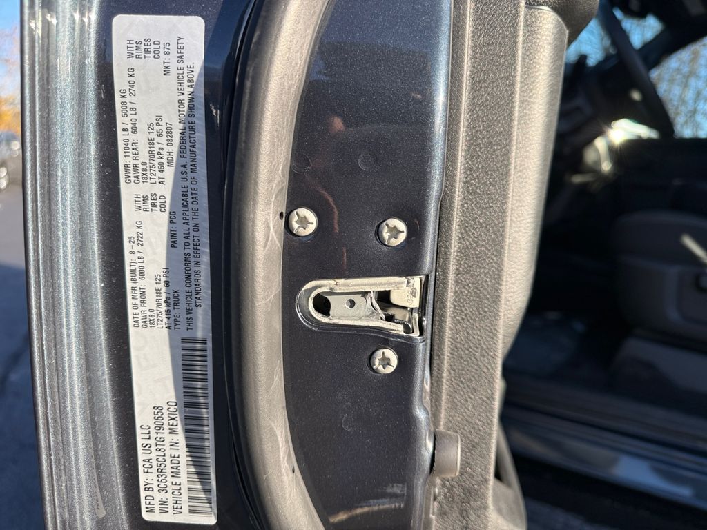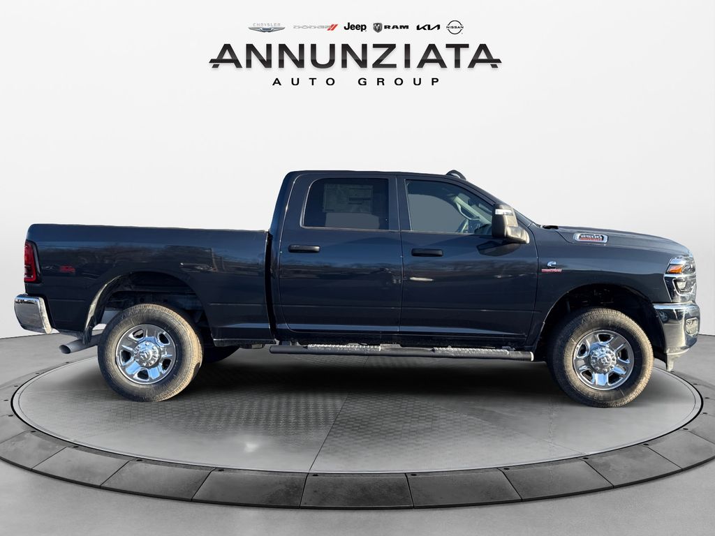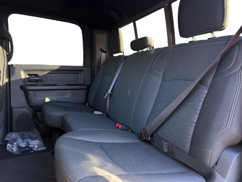 Bed Utility Group (LED Bed Lighting, MOPAR Deployable Bed Step, and MOPAR Spray in Bedliner), Quick Order Package 24A Tradesman, Tradesman Level 2 Equipment Group (115-Volt Auxiliary Front Power Outlet, 12" Touchscreen Display, 2 Way Rear Headrest Seat, 4 Way Front Headrests, 40/20/40 Split Bench Seat, 400W Inverter, 4G LTE Wi-Fi Hot Spot, Air Conditioning ATC with Dual Zone Control, Alexa Built-in, Anti-Spin Differential Rear Axle, Apple CarPlay, Auto-Dimming Rear-View Mirror, Black Exterior Mirrors, Bright Front Bumper, Bright Rear Bumper, Carpet Floor Covering, Center Hub, Chrome Grille Surround, Cloth 40/20/40 Bench Seat, Connected Travel and Traffic Services, Connectivity - US/Canada, Disassociated Touchscreen Display, Emergency Vehicle Alert System (EVAS), Exterior 115V AC Outlet, Exterior Mirrors Courtesy Lamps, Exterior Mirrors with Heating Element, Exterior Mirrors with Supplemental Signals, For Details, Visit DriveUconnect.com, For More Info, Call 800-643-2112, Front and Rear Floor Mats, Front Armrest with Cupholders, Global Telematics Box Module, Google Android Auto, GPS Antenna Input, GPS Navigation, HD Radio, Integrated Voice Command with Bluetooth, Manual Adjust 4-Way Driver Seat, Manual Adjust 4-Way Front Passenger Seat, Manual Folding Exterior Mirrors, Manual Telescoping Mirrors, Matte Black Mesh Grille with Chrome, Mirror Running Lights, Mopar Black Tubular Side Steps, Off-Road Info Pages, ParkSense Front/Rear Park Assist System, Power Adjust Mirrors, Power Heated Folding Telescope Mirrors, Power-Adjustable Convex Aux Mirrors, Radio: Uconnect 5 Navigation with 12.0" Display, Rear Folding Seat, Rear Power Sliding Window, Remote USB Port - Charge Only, Selectable Tire Fill Alert, SiriusXM Radio Service, SiriusXM with 360L, Storage Tray, Tinted Acoustic Windshield Glass, Trailer Tow Pages, and Wheels: 18" x 8.0" Steel Chrome Clad), 4-Wheel Disc Brakes, 5th Wheel/Gooseneck Towing Prep Group, 6 Speakers, ABS brakes, Air Conditioning, AM/FM radio: SiriusXM, Apple CarPlay/Android Auto, Black Wheel Center Hub, Brake assist, Clearance Lamps, Compass, Delay-off headlights, Driver door bin, Dual front impact airbags, Dual front side impact airbags, Electronic Stability Control, Front anti-roll bar, Front Center Armrest w/Storage, Front fog lights, Front License Plate Bracket, Front reading lights, Fully automatic headlights, Illuminated entry, Low tire pressure warning, MyFlexCare Service Diesel, Occupant sensing airbag, Outside temperature display, Overhead airbag, Overhead console, Panic alarm, ParkView Rear Back-Up Camera, Passenger door bin, Passenger vanity mirror, Power steering, Power windows, Radio data system, Radio: Uconnect 5 with 8.4" Display, Rear anti-roll bar, Rear step bumper, Rear Wheelhouse Liners, Rear window defroster, Remote keyless entry, Speed control, Tachometer, Tilt steering wheel, Traction control, Variably intermittent wipers, Voltmeter, and Wheels: 17" x 7.5" Black Steel StyleD.