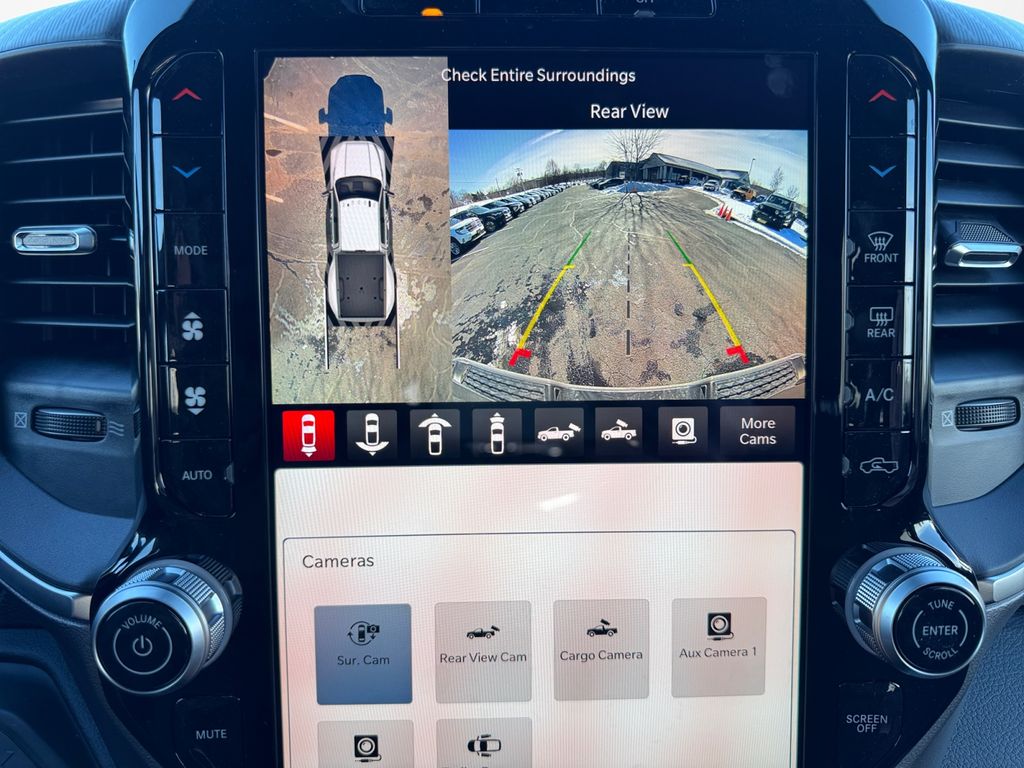 Big Horn Level 2 Plus Equipment Group (115-Volt Auxiliary Front Power Outlet, 12" Touchscreen Display, 2 Way Rear Headrest Seat, 2nd Row in Floor Storage Bins, 4 Way Front Headrests, 400W Inverter, 4G LTE Wi-Fi Hot Spot, 9 Alpine Speakers with Subwoofer, Active Lane Management System, Adaptive Steering System, Air Conditioning ATC with Dual Zone Control, Alexa Built-in, Apple CarPlay, Auto High Beam Headlamp Control, Auto Power-Folding Mirrors, Auto-Dimming Rear-View Mirror, Black Exterior Mirrors, Blind Spot and Cross Path Detection, Bucket Seats, Center Stop Lamp with Cargo View Camera, Cluster 7.0" TFT Color Display, Connected Travel and Traffic Services, Connectivity - US/Canada, Dampened Tailgate, Disassociated Touchscreen Display, Drowsy Driver Detection, Dual Glove Boxes, Dual Wireless Charging Pad, Emergency Vehicle Alert System (EVAS), Exterior 115V AC Outlet, Exterior Mirrors Courtesy Lamps, Exterior Mirrors with Heating Element, Exterior Mirrors with Supplemental Signals, Foam Bottle Insert (door Trim Panel), Folding Flat Load Floor Storage, Footwell Courtesy Lamp, For Details Visit DriveUconnect.com, For More Info, Call 800-643-2112, Forward and Reverse Utility Lights, Front Seat Back Map Pockets, Full Length Upgraded Floor Console, Global Telematics Box Module, Glove Box Lamp, Google Android Auto, GPS Antenna Input, GPS Navigation, HD Radio, Heated Front Seats, Heated Steering Wheel, Integrated Voice Command with Bluetooth, LED Bed Lighting, LED Tail Lamps, Locking Lower Glove Box, Luxury Steering Wheel, Manual Adjust 4-Way Front Passenger Seat, Mirror Running Lights, MOPAR Deployable Bed Step, MOPAR Spray in Bedliner, MOPAR Trailer Camera Wiring with No Camera, Off-Road Information Pages, Power 2-Way Driver Lumbar Adjust, Power Adjust 8-Way Driver Seat, Power Adjust Mirrors, Power Adjustable Pedals, Power Heated Fold Telescopic Mirrors, Power Telescoping Mirrors, Power-Adjustable Convex Aux Mirrors, Premium Cloth Bucket Seats, Radio: Uconnect 5 Navigation with 12.0" Display, Rain Sensitive Windshield Wipers, Rear 60/40 Folding Seat, Rear Dome with on/Off Switch Lamp, Rear Power Sliding Window, Red Tail Lamp Bezels, Remote Start System, Selectable Tire Fill Alert, SiriusXM Radio Service, SiriusXM with 360L, Steering Wheel Mounted Audio Controls, Sun Visors with Illuminated Vanity Mirrors, Surround View Camera System, Traffic Sign Recognition, Trailer Reverse Guidance, Trailer Tire Pressure Monitoring System, Trailer Tow Pages, and Universal Garage Door Opener), Night Edition (Black Exterior Truck Badging, Black Interior Accents, Black Wheel Center Hub, Body Color Grille Surround, Gloss Black Nostrils/Molded in Color Black Grille, Painted Front Bumper, and Painted Rear Bumper), Quick Order Package 24Z Big Horn, 4-Wheel Disc Brakes, 40/20/40 Split Bench Seat, 50 Gallon Fuel Tank, 5th Wheel/Gooseneck Towing Prep Group, 6 Speakers, 6000# Front Axle with Hub Extension, ABS brakes, Air Conditioning, Alloy wheels, AM/FM radio: SiriusXM, Apple CarPlay/Android Auto, Box and Rear Fender Clearance Lamps, Brake assist, Bumpers: chrome, Center Hub, Clearance Lamps, Cloth 40/20/40 Bench Seat, Compass, Dash Pass Thru Wire Circuits, Delay-off headlights, Driver door bin, Dual Alternators Rated At 480 Amps, Dual front impact airbags, Dual front side impact airbags, Dual Rear Wheels, Electronic Stability Control, Front anti-roll bar, Front Armrest with Cupholders, Front Center Armrest w/Storage, Front fog lights, Front License Plate Bracket, Front reading lights, Fully automatic headlights, Heated door mirrors, Illuminated entry, Instrument Panel Mounted Auxiliary Switches, Low tire pressure warning, Manual Adjust 4-Way Driver Seat, Manufacturer's Statement of Origin, MOPAR Front and Rear Rubber Floor Mats, Nexen Brand Tires, Occupant sensing airbag, Outside temperature display, Overhead airbag, Overhead console, Painted Flat Cab-Length Side Step