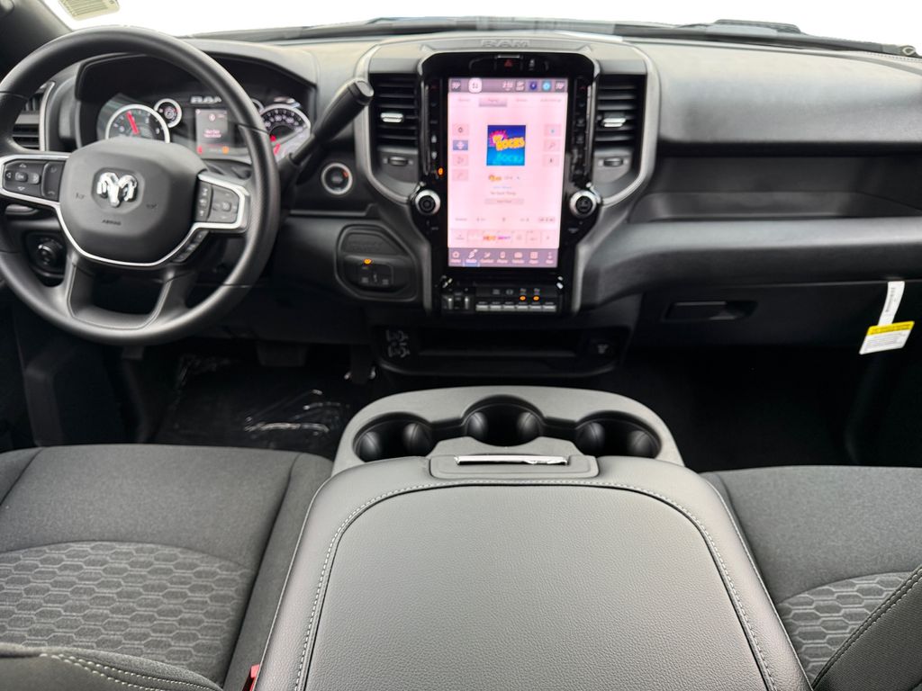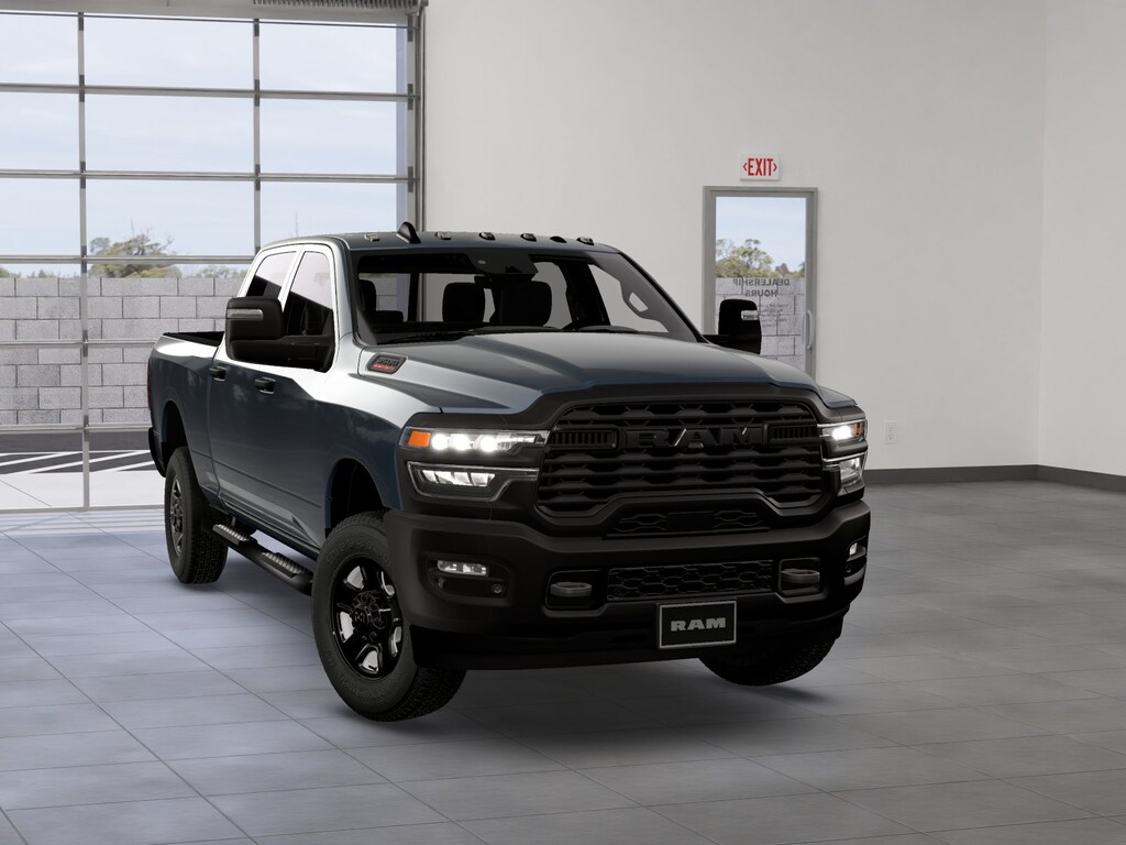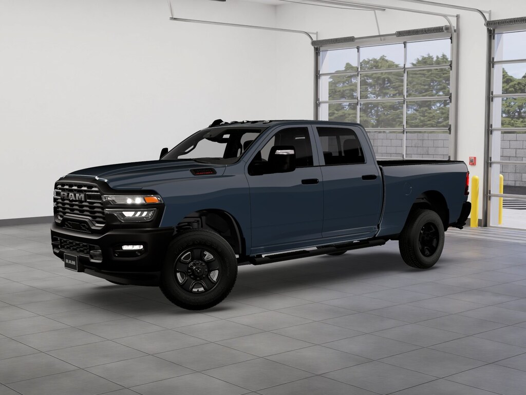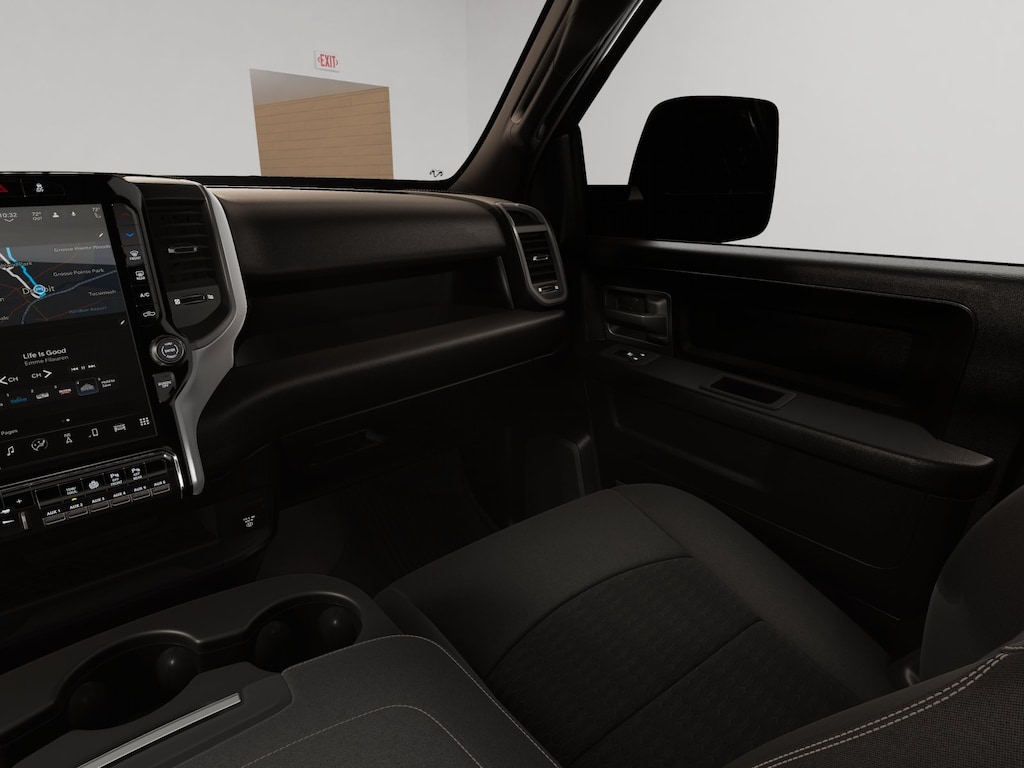 Bed Utility Group (LED Bed Lighting, MOPAR Deployable Bed Step, and MOPAR Spray in Bedliner), Quick Order Package 24A Tradesman, Tradesman Level 1 Equipment Group (115-Volt Auxiliary Front Power Outlet, 12" Touchscreen Display, 2 Way Rear Headrest Seat, 4 Way Front Headrests, 40/20/40 Split Bench Seat, 400W Inverter, 4G LTE Wi-Fi Hot Spot, Air Conditioning ATC with Dual Zone Control, Alexa Built-in, Apple CarPlay, Auto-Dimming Rear-View Mirror, Black Exterior Mirrors, Carpet Floor Covering, Cloth 40/20/40 Bench Seat, Connected Travel and Traffic Services, Connectivity - US/Canada, Convenience Group, Disassociated Touchscreen Display, Emergency Vehicle Alert System (EVAS), Exterior 115V AC Outlet, Exterior Mirrors Courtesy Lamps, Exterior Mirrors with Heating Element, Exterior Mirrors with Supplemental Signals, For Details Visit DriveUconnect.com, For More Info, Call 800-643-2112, Front and Rear Floor Mats, Front Armrest with Cupholders, Global Telematics Box Module, Google Android Auto, GPS Antenna Input, GPS Navigation, HD Radio, Integrated Voice Command with Bluetooth, Manual Adjust 4-Way Driver Seat, Manual Adjust 4-Way Front Passenger Seat, Manual Folding Exterior Mirrors, Manual Telescoping Mirrors, Mirror Running Lights, Mopar Black Tubular Side Steps, Off-Road Information Pages, ParkSense Front/Rear Park Assist System, Power Adjust Mirrors, Power Heat Fold Telescopic Mirrors, Power-Adjustable Convex Aux Mirrors, Radio: Uconnect 5 Navigation with 12.0" Display, Rear Folding Seat, Rear Power Sliding Window, Remote USB Port - Charge Only, Selectable Tire Fill Alert, SiriusXM Radio Service, SiriusXM with 360L, Storage Tray, Tinted Acoustic Windshield Glass, and Trailer Tow Pages), 4-Wheel Disc Brakes, 5th Wheel/Gooseneck Towing Prep Group, 6 Speakers, ABS brakes, Air Conditioning, AM/FM radio: SiriusXM, Apple CarPlay/Android Auto, Brake assist, Clearance Lamps, Compass, Dash Pass Thru Wire Circuits, Delay-off headlights, Driver door bin, Dual Alternators Rated At 480 Amps, Dual front impact airbags, Dual front side impact airbags, Electronic Stability Control, Front anti-roll bar, Front Center Armrest w/Storage, Front fog lights, Front License Plate Bracket, Front reading lights, Fully automatic headlights, Illuminated entry, Instrument Panel Mounted Auxiliary Switches, Low tire pressure warning, Manufacturer's Statement of Origin, MOPAR Front and Rear Rubber Floor Mats, Occupant sensing airbag, Outside temperature display, Overhead airbag, Overhead console, Panic alarm, ParkView Rear Back-Up Camera, Passenger door bin, Passenger vanity mirror, Power steering, Power windows, Radio data system, Radio: Uconnect 5 with 8.4" Display, Rear step bumper, Rear Wheelhouse Liners, Rear window defroster, Remote keyless entry, Speed control, Tachometer, Tilt steering wheel, Traction control, Variably intermittent wipers, Voltmeter, and Wheels: 18" x 8.0" Black Painted SteeL.
