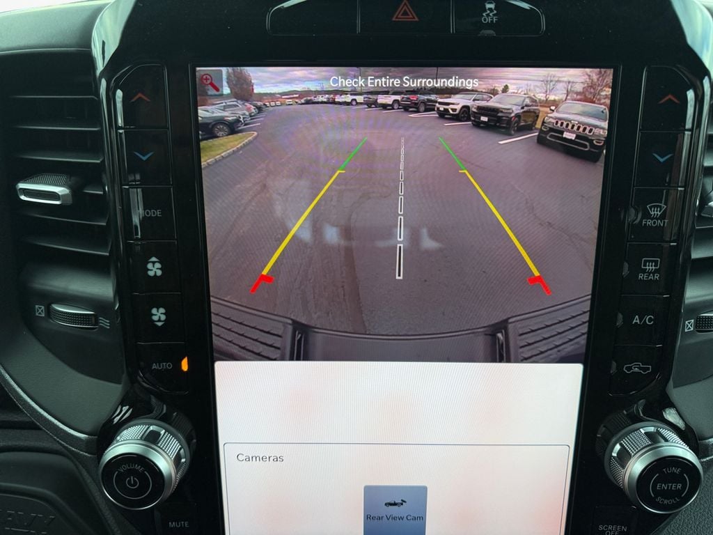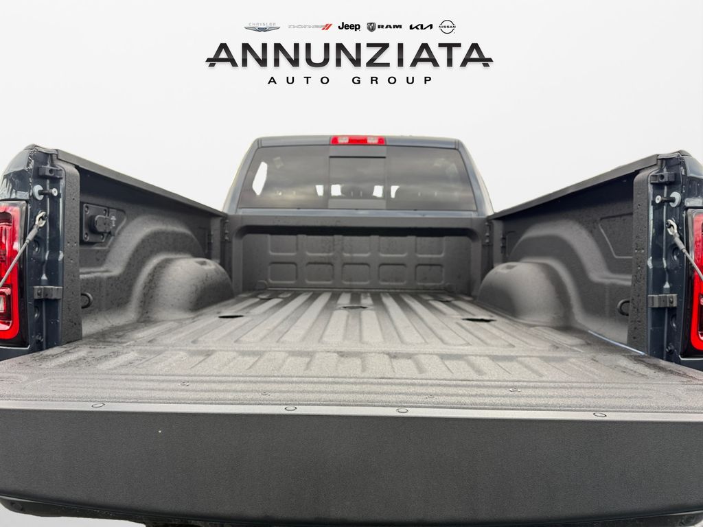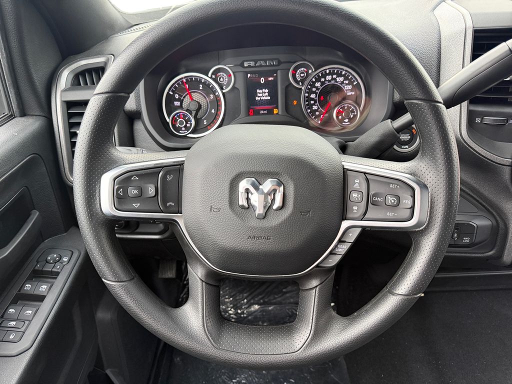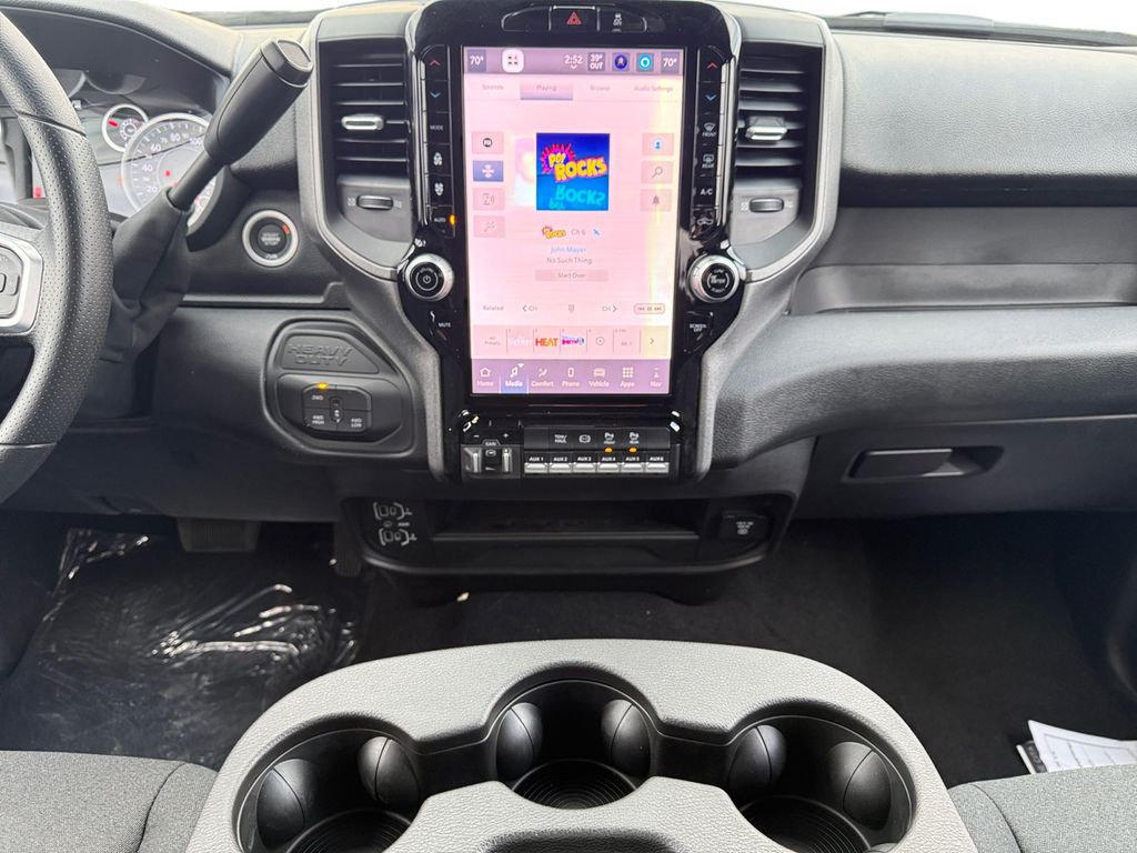 Bed Utility Group (LED Bed Lighting, MOPAR Deployable Bed Step, and MOPAR Spray in Bedliner), Quick Order Package 24A Tradesman, Tradesman Level 1 Equipment Group (115-Volt Auxiliary Front Power Outlet, 12" Touchscreen Display, 2 Way Rear Headrest Seat, 4 Way Front Headrests, 40/20/40 Split Bench Seat, 400W Inverter, 4G LTE Wi-Fi Hot Spot, Air Conditioning ATC with Dual Zone Control, Alexa Built-in, Apple CarPlay, Auto-Dimming Rear-View Mirror, Black Exterior Mirrors, Carpet Floor Covering, Cloth 40/20/40 Bench Seat, Connected Travel and Traffic Services, Connectivity - US/Canada, Convenience Group, Disassociated Touchscreen Display, Emergency Vehicle Alert System (EVAS), Exterior 115V AC Outlet, Exterior Mirrors Courtesy Lamps, Exterior Mirrors with Heating Element, Exterior Mirrors with Supplemental Signals, For Details Visit DriveUconnect.com, For More Info, Call 800-643-2112, Front and Rear Floor Mats, Front Armrest with Cupholders, Global Telematics Box Module, Google Android Auto, GPS Antenna Input, GPS Navigation, HD Radio, Integrated Voice Command with Bluetooth, Manual Adjust 4-Way Driver Seat, Manual Adjust 4-Way Front Passenger Seat, Manual Folding Exterior Mirrors, Manual Telescoping Mirrors, Mirror Running Lights, Mopar Black Tubular Side Steps, Off-Road Information Pages, ParkSense Front/Rear Park Assist System, Power Adjust Mirrors, Power Heat Fold Telescopic Mirrors, Power-Adjustable Convex Aux Mirrors, Radio: Uconnect 5 Navigation with 12.0" Display, Rear Folding Seat, Rear Power Sliding Window, Remote USB Port - Charge Only, Selectable Tire Fill Alert, SiriusXM Radio Service, SiriusXM with 360L, Storage Tray, Tinted Acoustic Windshield Glass, and Trailer Tow Pages), 4-Wheel Disc Brakes, 5th Wheel/Gooseneck Towing Prep Group, 6 Speakers, ABS brakes, Air Conditioning, AM/FM radio: SiriusXM, Apple CarPlay/Android Auto, Brake assist, Clearance Lamps, Compass, Dash Pass Thru Wire Circuits, Delay-off headlights, Driver door bin, Dual Alternators Rated At 480 Amps, Dual front impact airbags, Dual front side impact airbags, Electronic Stability Control, Front anti-roll bar, Front Center Armrest w/Storage, Front fog lights, Front License Plate Bracket, Front reading lights, Fully automatic headlights, Illuminated entry, Instrument Panel Mounted Auxiliary Switches, Low tire pressure warning, Manufacturer's Statement of Origin, MOPAR Front and Rear Rubber Floor Mats, Occupant sensing airbag, Outside temperature display, Overhead airbag, Overhead console, Panic alarm, ParkView Rear Back-Up Camera, Passenger door bin, Passenger vanity mirror, Power steering, Power windows, Radio data system, Radio: Uconnect 5 with 8.4" Display, Rear step bumper, Rear Wheelhouse Liners, Rear window defroster, Remote keyless entry, Speed control, Tachometer, Tilt steering wheel, Traction control, Variably intermittent wipers, Voltmeter, and Wheels: 18" x 8.0" Black Painted SteeL.