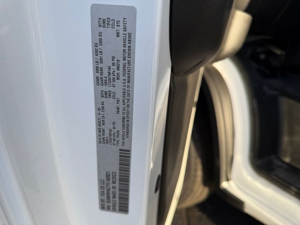 Convenience Group (Exterior Mirrors with Heating Element, Exterior Mirrors with Supplemental Signals, Front Fog Lamps, Power Adjust Mirrors, Power Folding/Heated Mirrors, Power-Adjustable Convex Aux Mirrors, Power-Folding Mirrors, and Rear Cargo LED Lamp), Power Group (100 Amp Battery, 115V Auxiliary Power Outlet, and 12V Rear Auxiliary Power Outlet), Premium Convenience Group (10.1" Touchscreen Display, 4G LTE Wi-Fi Hotspot, Apple CarPlay, Connected Travel and Traffic Services, Connectivity - US/Canada, Disassociated Touchscreen Display, For Details, Visit DriveUconnect.com, For More Info, Call 800-643-2112, Global Telematics Box Module, Google Android Auto, GPS Antenna Input, GPS Navigation, HD Radio, Integrated Center Stack Radio, Integrated Voice Command with Bluetooth, Passive Entry, Radio: Uconnect 5 Nav with 10.1" Display, SiriusXM Radio Service, SiriusXM with 360L, Traffic Sign Information, and Wireless Charging Pad), Quick Order Package 22B Tradesman (4-Way Manual Adjust Front Passenger Seat and Passenger Bucket Seat), 220 Amp Alternator, 4 Speakers, 4-Wheel Disc Brakes, 4.08 Axle Ratio, ABS brakes, Adaptive Cruise Control with Stop and Go, Air Conditioning, AM/FM radio: SiriusXM, Apple CarPlay/Android Auto, Black/Gray Seats, Bodyside moldings, Brake assist, Class IV Receiver Hitch, Cloth Bucket Seats, Driver door bin, Driver Seat Armrest, Driver's Seat Mounted Armrest, Electronic Stability Control, Front anti-roll bar, Front Bucket Seats, Front License Plate Bracket, Front reading lights, Front wheel independent suspension, Heavy Duty Suspension, Illuminated entry, Low tire pressure warning, Manufacturer's Statement of Origin, MyFlexCare Service Plan, Outside temperature display, Overhead airbag, Overhead console, ParkSense Rear Park Assist System, ParkView Rear Back-Up Camera, Passenger door bin, Power steering, Power windows, Radio: Uconnect 5 with 7" Display, Rear anti-roll bar, Remote keyless entry, Steering wheel mounted audio controls, Tachometer, Telescoping steering wheel, Traction control, Trip computer, Turn signal indicator mirrors, Variably intermittent wipers, Wheel Center Cap, and Wheels: 16" x 6.0" SteeL.