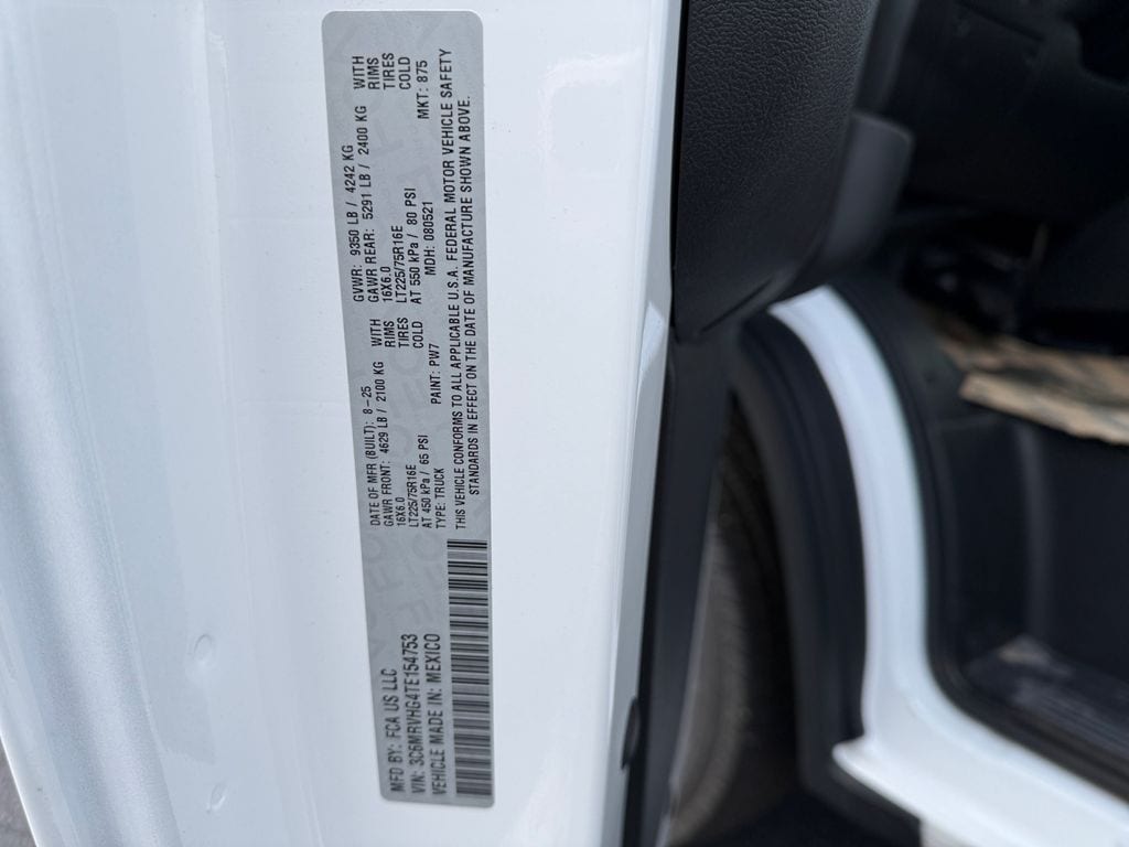 Convenience Group (Exterior Mirrors with Heating Element, Exterior Mirrors with Supplemental Signals, Front Fog Lamps, Power Adjust Mirrors, Power Folding/Heated Mirrors, Power-Adjustable Convex Aux Mirrors, Power-Folding Mirrors, and Rear Cargo LED Lamp), Power Group (100 Amp Battery, 115V Auxiliary Power Outlet, and 12V Rear Auxiliary Power Outlet), Premium Convenience Group (10.1" Touchscreen Display, 4G LTE Wi-Fi Hotspot, Apple CarPlay, Connected Travel and Traffic Services, Connectivity - US/Canada, Disassociated Touchscreen Display, For Details, Visit DriveUconnect.com, For More Info, Call 800-643-2112, Global Telematics Box Module, Google Android Auto, GPS Antenna Input, GPS Navigation, HD Radio, Integrated Center Stack Radio, Integrated Voice Command with Bluetooth, Passive Entry, Radio: Uconnect 5 Nav with 10.1" Display, SiriusXM Radio Service, SiriusXM with 360L, Traffic Sign Information, and Wireless Charging Pad), Quick Order Package 22B Tradesman (4-Way Manual Adjust Front Passenger Seat and Passenger Bucket Seat), 220 Amp Alternator, 4 Speakers, 4-Wheel Disc Brakes, 4.08 Axle Ratio, ABS brakes, Adaptive Cruise Control with Stop and Go, Air Conditioning, AM/FM radio: SiriusXM, Apple CarPlay/Android Auto, Black/Gray Seats, Bodyside moldings, Brake assist, Class IV Receiver Hitch, Cloth Bucket Seats, Driver door bin, Driver Seat Armrest, Driver's Seat Mounted Armrest, Electronic Stability Control, Front anti-roll bar, Front Bucket Seats, Front License Plate Bracket, Front reading lights, Front wheel independent suspension, Heavy Duty Suspension, Illuminated entry, Low tire pressure warning, Manufacturer's Statement of Origin, Outside temperature display, Overhead airbag, Overhead console, ParkSense Rear Park Assist System, ParkView Rear Back-Up Camera, Passenger door bin, Power steering, Power windows, Radio: Uconnect 5 with 7" Display, Rear anti-roll bar, Remote keyless entry, Steering wheel mounted audio controls, Tachometer, Telescoping steering wheel, Traction control, Trip computer, Turn signal indicator mirrors, Variably intermittent wipers, Wheel Center Cap, and Wheels: 16" x 6.0" SteeL.