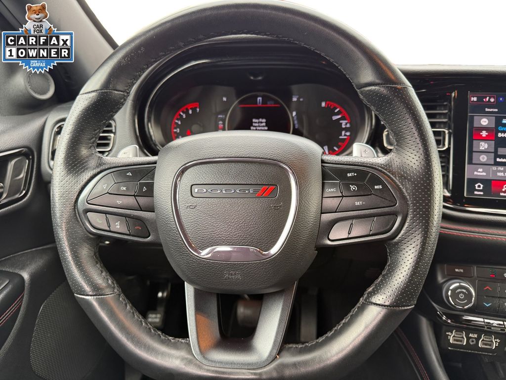 With its striking black exterior and sleek, muscular styling, this Durango R/T commands attention wherever it goes. The bold R/T badging and 20-inch alloy wheels further accentuate its sporty and confident presence, making it a true head-turner.