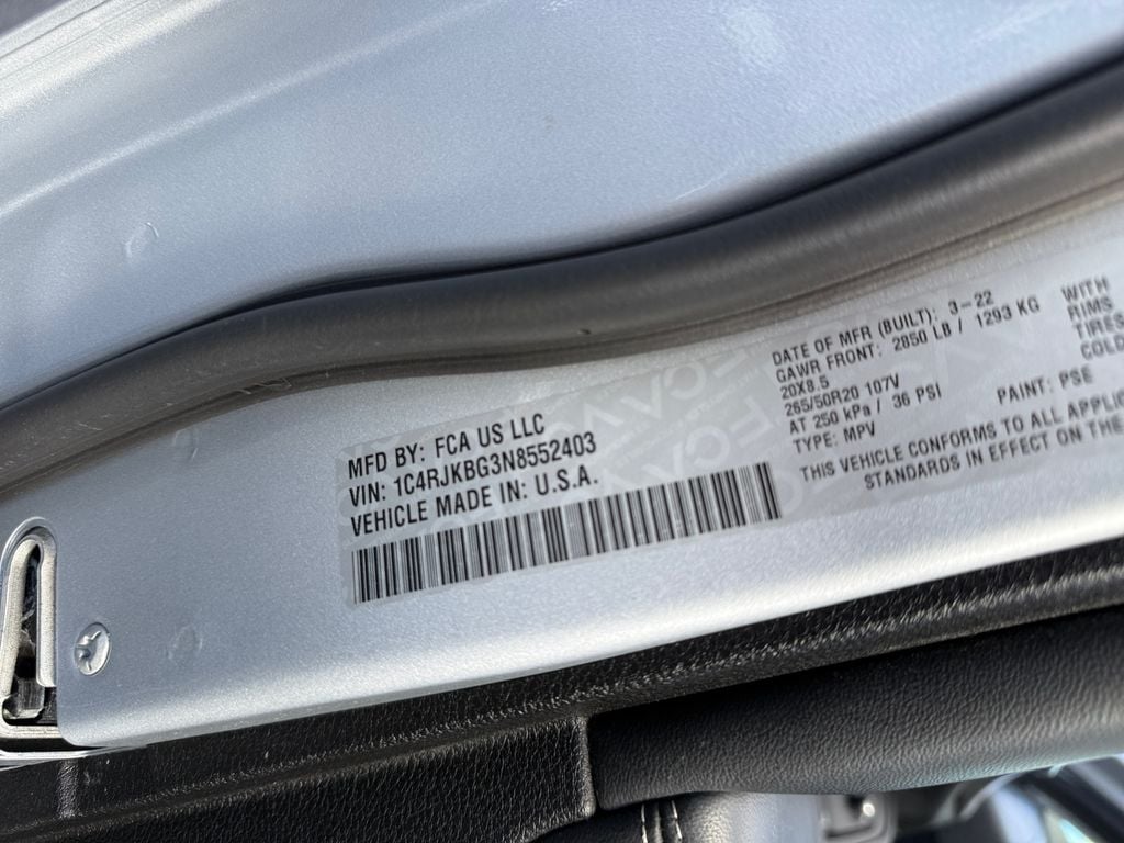 Any car. From any of our locations. Brought to the dealership that's most convenient for you. The Annunziata Auto Group - located in Orange County, New York, just minutes from Pennsylvania and New Jersey! Black Appearance Package (Gloss Black Exterior Accents, Molded In Color Black/Gloss Black Roof Rails, and Wheels: 20" x 8.5" Gloss Black Painted Aluminum), Quick Order Package 22E, FCA US LLC Certified Pre-Owned Certified, 3.45 Rear Axle Ratio, 3rd row seats: split-bench, 4-Wheel Disc Brakes, 4G LTE Wi-Fi Hot Spot, 6 Speakers, ABS brakes, Active Noise Control System, Air Conditioning, Alloy wheels, AM/FM radio: SiriusXM with 360L, Anti-whiplash front head restraints, Apple CarPlay, Audio memory, Auto High-beam Headlights, Automatic temperature control, Brake assist, Bumpers: body-color, Capri Leather Seats, Compass, Connectivity - US/Canada, Delay-off headlights, Disassociated Touchscreen Display, Driver door bin, Driver vanity mirror, Dual front impact airbags, Dual front side impact airbags, Electronic Stability Control, Emergency communication system, For Details, Visit DriveUconnect.com, For More Info, Call 800-643-2112, Four wheel independent suspension, Front anti-roll bar, Front Bucket Seats, Front Center Armrest w/Storage, Front dual zone A/C, Front fog lights, Front reading lights, Fully automatic headlights, Garage door transmitter, Global Telematics Box Module (TBM), Google Android Auto, GPS Antenna Input, Heated door mirrors, Heated front seats, Heated rear seats, Heated steering wheel, Illuminated entry, Integrated Center Stack Radio, Integrated Voice Command w/Bluetooth, Knee airbag, Leather steering wheel, Low tire pressure warning, Manual Fold Seatbacks, Memory seat, Normal Duty Suspension, Occupant sensing airbag, Outside temperature display, Overhead airbag, Overhead console, Panic alarm, ParkView Rear Back-Up Camera, Passenger door bin, Passenger vanity mirror, Power door mirrors, Power driver seat, Power Liftgate, Power passenger seat, Power steering, Power windows, Radio data system, Radio: Uconnect 5 w/8.4" Display, Rear air conditioning, Rear anti-roll bar, Rear reading lights, Rear window defroster, Rear window wiper, Reclining 3rd row seat, Remote keyless entry, Security system, SiriusXM Radio Service, SiriusXM Satellite Radio, SiriusXM w/360L, Speed control, Speed-Sensitive Wipers, Split folding rear seat, Spoiler, Steering wheel mounted audio controls, Tachometer, Telescoping steering wheel, Tilt steering wheel, Traction control, Trip computer, Turn signal indicator mirrors, USB Host Flip, Variably intermittent wipers, Voltmeter, and Wheels: 18" x 8.0" Fully Painted Aluminum 2.