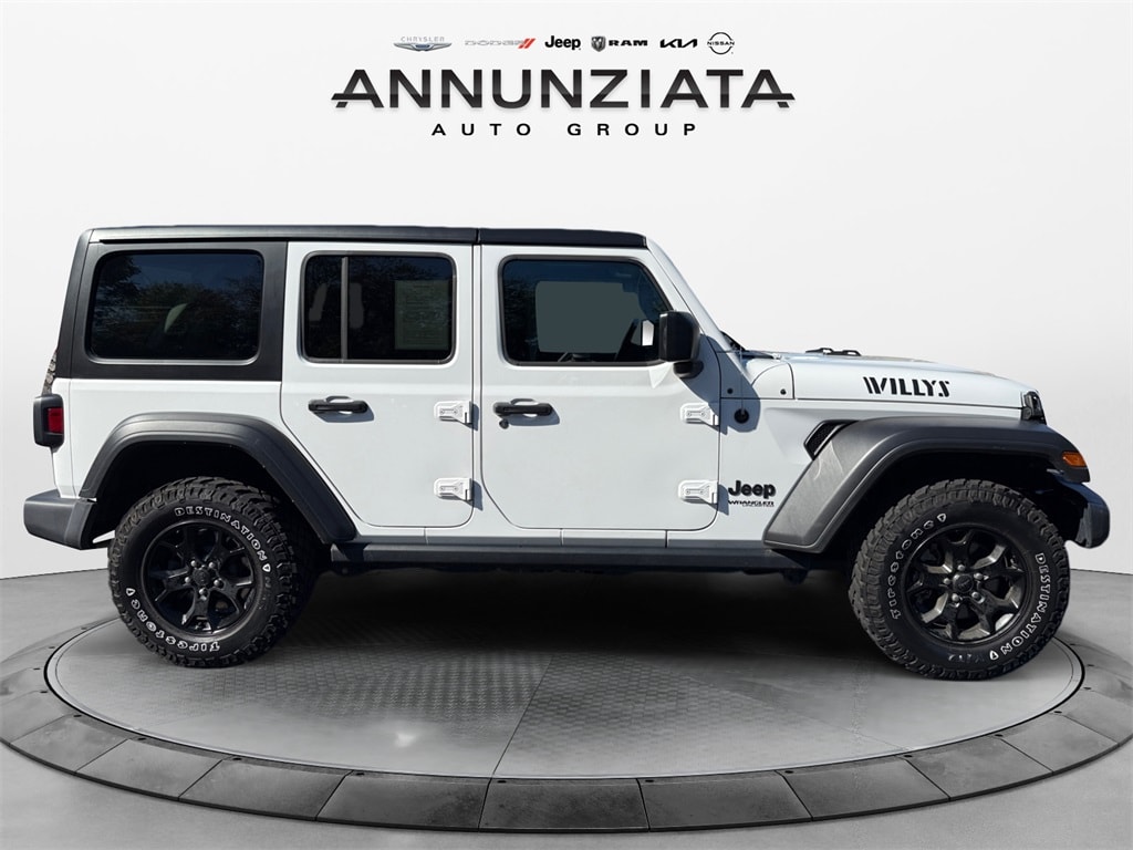 Certified. Bright White Clearcoat 2022 Jeep Wrangler Unlimited Willys 4WD 8-Speed Automatic 2.0L I4 DOHC