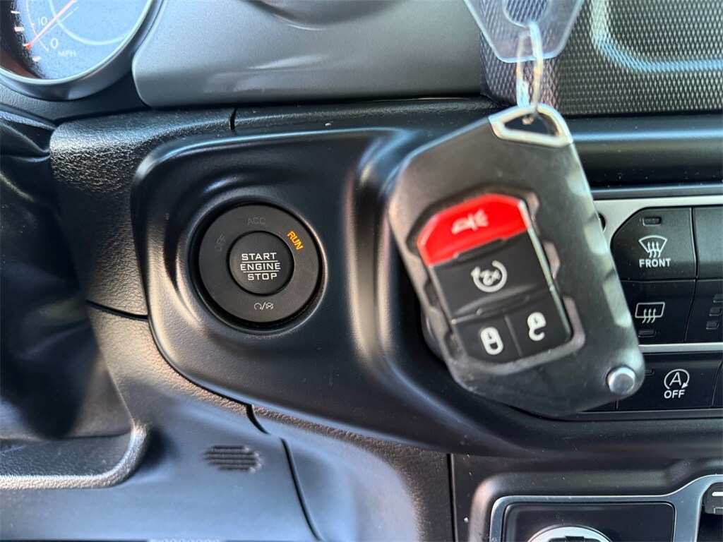 Cold Weather Group (Heated Front Seats, Heated Steering Wheel, and Leather Wrapped Steering Wheel), Convenience Group (Universal Garage Door Opener), LED Headlamp & Fog Lamp Group (Front LED Fog Lamps and LED Premium Reflector Headlamps), Quick Order Package 22W Willys (4-Wheel Drive Swing Gate Decal, 97 MPH Vehicle Max Speed Calibration, Anti-Spin Differential Rear Axle, Automatic Headlamps, Black Grille, Black Trail Rated Badge, Deep Tint Sunscreen Windows, Front 1-Touch Down Power Windows, Matte Black Jeep Badge, Mold In Color Bumper w/Gloss Black, MOPAR All-Weather Floor Mats, Power Heated Mirrors, Remote Keyless Entry, Security Alarm, Speed Sensitive Power Locks, Sun Visors w/Illuminated Vanity Mirrors, Wheels: 17" x 7.5" Moab Black Aluminum, Willys, and Willys Hood Decal), Technology Group (2-Door Passive Entry, Front Door Locks, Air Conditioning w/Auto Temperature Control, Air Filtering, Cluster 7.0" TFT Color Display, SiriusXM Radio Service, and SiriusXM Satellite Radio), FCA US LLC Certified Pre-Owned Certified, 110 MPH Vehicle Max Speed Calibration, 3.45 Rear Axle Ratio, 4-Wheel Disc Brakes, 8 Speakers, ABS brakes, Air Conditioning, AM/FM radio, Apple CarPlay/Android Auto, Aux Battery, Black 3-Piece Hard Top, Brake assist, Cloth Low-Back Bucket Seats, Compass, Delay-off headlights, Driver door bin, Driver vanity mirror, Dual front impact airbags, Dual front side impact airbags, Electronic Stability Control, Emergency communication system: SiriusXM Guardian, Engine Oil Cooler, Freedom Panel Storage Bag, Front anti-roll bar, Front Bucket Seats, Front Center Armrest w/Storage, Front fog lights, Front reading lights, Integrated roll-over protection, Low tire pressure warning, No Soft Top, Non-Lock Fuel Cap w/o Discriminator, Normal Duty Suspension, Occupant sensing airbag, Outside temperature display, ParkView Rear Back-Up Camera, Passenger door bin, Passenger vanity mirror, Power steering, Radio data system, Radio: Uconnect 4 w/7" Display, Rear anti-roll bar, Rear reading lights, Rear Window Defroster, Rear Window Wiper/Washer, Speed control, Split folding rear seat, Steering wheel mounted audio controls, Stop-Start Dual Battery System, Tachometer, Telescoping steering wheel, Tilt steering wheel, Traction control, Trip computer, Variably intermittent wipers, and Wheels: 17" x 7.5" Black Steel Styled.
