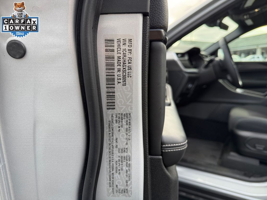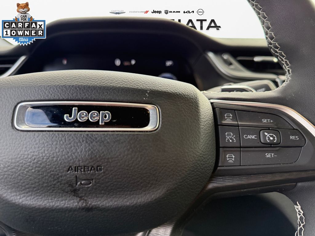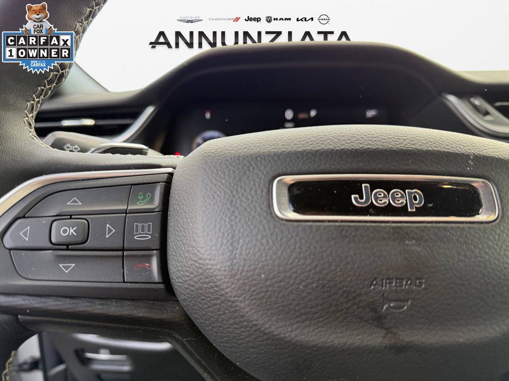 Luxury Tech Group I (115V Auxiliary Power Outlet, Heated Front Seats, Heated Steering Wheel, Power Liftgate, Rain Sensitive Windshield Wipers, Remote Start System, Satellite Radio, Secondary Active Grille Shutters, Selectable Tire Fill Alert, and Wireless Charging Pad), MOPAR Finishing Package (MOPAR Front Splash Guards, MOPAR Paint Protection Film, and MOPAR Rear Splash Guards with Jeep Logo), Quick Order Package 23D Laredo X (Laredo X, Power Sunroof, and Wheels: 18" x 8" Fully Painted Aluminum), FCA US LLC Certified Pre-Owned Certified, 4WD, 4-Wheel Disc Brakes, 6 Speakers, ABS brakes, Air Conditioning, Alloy wheels, AM/FM radio: SiriusXM, Anti-whiplash front head restraints, Automatic temperature control, Brake assist, Bumpers: body-color, Cloth Seats, Compass, Delay-off headlights, Driver door bin, Driver vanity mirror, Dual front impact airbags, Dual front side impact airbags, Electronic Stability Control, Emergency communication system, Four wheel independent suspension, Front anti-roll bar, Front Bucket Seats, Front Center Armrest w/Storage, Front dual zone A/C, Front License Plate Bracket, Front reading lights, Fully automatic headlights, Heated door mirrors, Illuminated entry, Knee airbag, Low tire pressure warning, Model Year Tracking, Normal Duty Suspension, Occupant sensing airbag, Outside temperature display, Overhead airbag, Overhead console, Panic alarm, ParkView Rear Back-Up Camera, Passenger door bin, Passenger vanity mirror, Power door mirrors, Power driver seat, Power steering, Power windows, Radio data system, Radio: Uconnect 5 with 8.4" Display, Rear anti-roll bar, Rear reading lights, Rear window defroster, Rear window wiper, Remote keyless entry, Security system, Speed control, Speed-Sensitive Wipers, Split folding rear seat, Spoiler, Steering wheel mounted audio controls, Tachometer, Telescoping steering wheel, Tilt steering wheel, Traction control, Trip computer, Variably intermittent wipers, Voltmeter, and Wheels: 17" x 6.5" Fully Painted Aluminum.