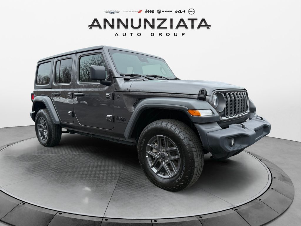 Certified. Granite Crystal Metallic Clearcoat 2025 Jeep Wrangler Sport S 4WD 8-Speed Automatic 2.0L I4 DOHC