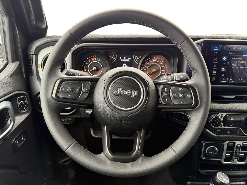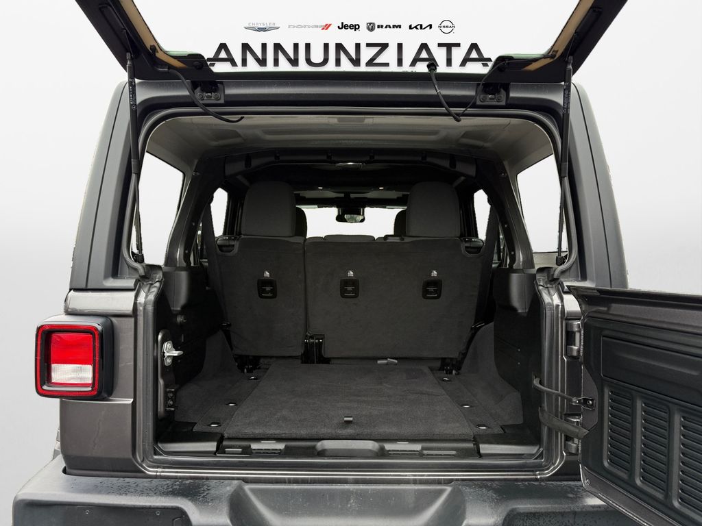 Quick Order Package 22S Sport S (Advanced Brake Assist, Automatic Headlamps, Corning Gorilla Glass, Deep Tint Sunscreen Windows, Enhanced Adaptive Cruise Control, Full Speed Forward Collision Warning Plus, Power Heated Mirrors, Premium Wrapped Steering Wheel, Security Alarm, Sun Visors w/Illuminated Vanity Mirrors, and Wheels: 17" x 7.5" Gray), FCA US LLC Certified Pre-Owned Certified, 110 MPH Vehicle Max Speed Calibration, 3.45 Overall Top Gear Ratio, 4-Wheel Disc Brakes, 8 Speakers, ABS brakes, Air Conditioning, AM/FM radio: SiriusXM, Apple CarPlay/Android Auto, Aux Battery, Black 3-Piece Hard Top, Brake assist, Cloth Low-Back Bucket Seats, Compass, Delay-off headlights, Driver door bin, Driver vanity mirror, Dual front impact airbags, Dual front side impact airbags, Electronic Stability Control, Freedom Panel Storage Bag, Front anti-roll bar, Front Bucket Seats, Front Center Armrest w/Storage, Front fog lights, Front reading lights, Illuminated entry, Integrated roll-over protection, Low tire pressure warning, Non-Lock Fuel Cap w/o Discriminator, Normal Duty Suspension, Occupant sensing airbag, Outside temperature display, Overhead airbag, Panic alarm, ParkView Rear Back-Up Camera, Passenger door bin, Passenger vanity mirror, Power steering, Power windows, Radio data system, Radio: Uconnect 5 w/12.3" Display, Rear anti-roll bar, Rear reading lights, Rear Window Defroster, Rear Window Wiper/Washer, Remote keyless entry, Speed control, Split folding rear seat, Steering wheel mounted audio controls, Stop-Start Dual Battery System, Tachometer, Telescoping steering wheel, Tilt steering wheel, Traction control, Trip computer, Variably intermittent wipers, and Wheels: 17" x 7.5" Black Steel Styled.