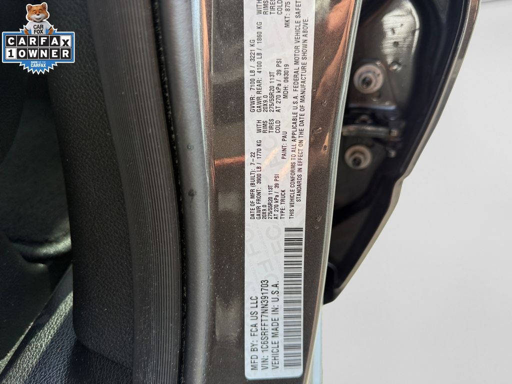 The Granite Crystal Metallic Clearcoat exterior gives this truck a sleek, modern look, complemented by the stunning 20" aluminum chrome clad wheels. The Remote Start System allows you to warm up the cabin or cool it down before you even step inside, ensuring your comfort from the moment you get behind the wheel.