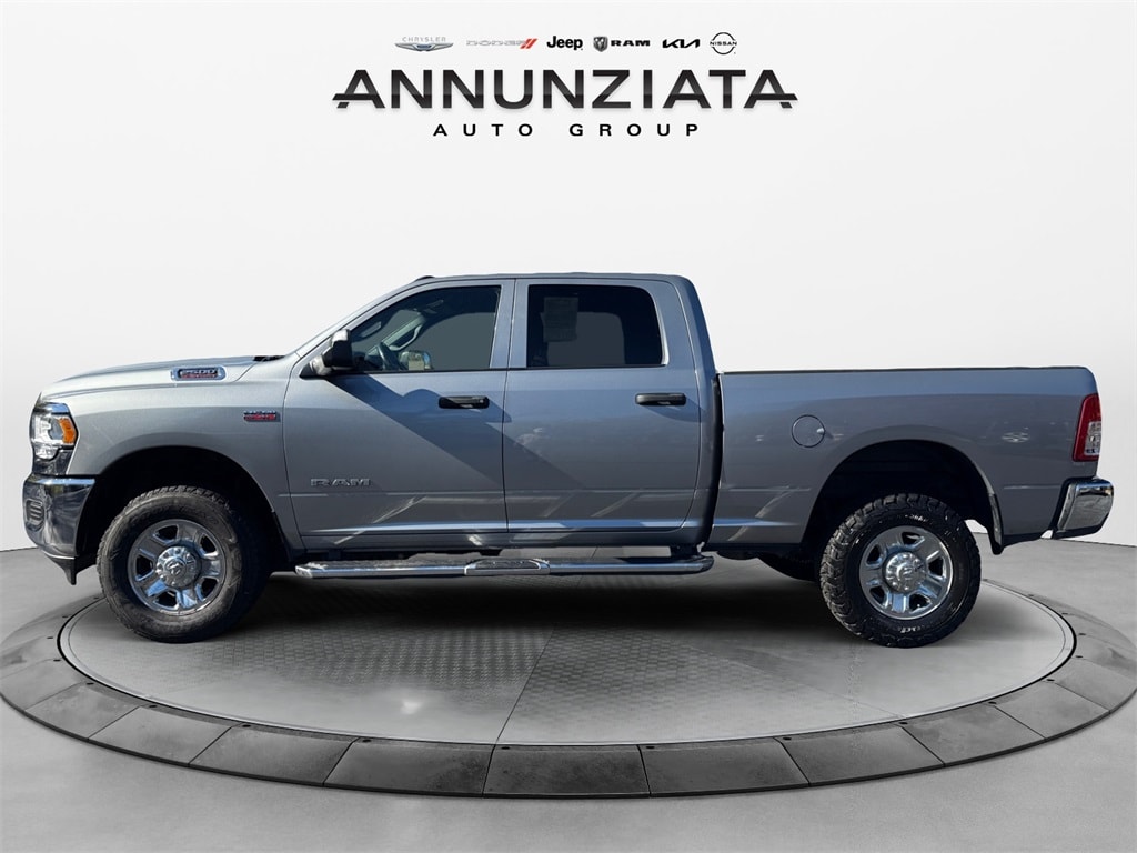 Chrome Appearance Group (Bright Front Bumper, Bright Rear Bumper, Center Hub, Chrome Grille Surround, Matte Black Mesh Grille w/Chrome, and Wheels: 18" x 8.0" Steel Chrome Clad), Quick Order Package 2GA Tradesman, Snow Chief Group (220 Amp Alternator, Anti-Spin Differential Rear Axle, Clearance Lamps, Dash Pass Thru Wire Circuits, and I/P Mounted Auxiliary Switches), Tradesman Level 2 Equipment Group (2 Way Rear Headrest Seat, 4 Way Front Headrests, 40/20/40 Split Bench Seat, Carpet Floor Covering, Cloth 40/20/40 Bench Seat, Front Armrest w/Cupholders, Manual Adjust 4-Way Driver Seat, Manual Adjust 4-Way Front Passenger Seat, Rear Folding Seat, Rear Power Sliding Window, Rear Window Defroster, SiriusXM Satellite Radio, and Storage Tray), FCA US LLC Certified Pre-Owned Certified, 115V Auxiliary Front Power Outlet, 17" x 7.5" Steel Styled Wheels, 3.73 Axle Ratio, 4-Wheel Disc Brakes, 400W Inverter, 4G LTE Wi-Fi Hot Spot, 6 Speakers, 8.4" Touchscreen Display, ABS brakes, Active Noise Control System, Air Conditioning, All R1 Low Radios, All Radio Equipped Vehicles, AM/FM radio, Apple CarPlay, Black Exterior Mirrors, Bluetooth Handsfree Phone & Audio, Brake assist, Chrome Flat Cab-Length Side Steps, Cluster 3.5" TFT Color Display, Cluster 7.0" TFT Color Display, Compass, Connectivity - US/Canada, Delay-off headlights, Driver door bin, Dual front impact airbags, Dual front side impact airbags, Electric Shift-On-The-Fly Transfer Case, Electronic Stability Control, Electronically Controlled Throttle, Emergency communication system: SiriusXM Guardian, Exterior 115V AC Outlet, Exterior Mirrors Courtesy Lamps, Exterior Mirrors w/Heating Element, Exterior Mirrors w/Supplemental Signals, For Details, Visit DriveUconnect.com, Front anti-roll bar, Front Center Armrest w/Storage, Front License Plate Bracket, Front reading lights, Fully automatic headlights, Global Telematics Box Module (TBM), Google Android Auto, GPS Antenna Input, Heated door mirrors, Heavy Duty Vinyl 40/20/40 Split Bench Seat, Illuminated entry, Integrated Center Stack Radio, Integrated Voice Command w/Bluetooth, LED Bed Lighting, Low tire pressure warning, Manufacturer's Statement of Origin, Mirror Running Lights, MOPAR Front & Rear Rubber Floor Mats, MOPAR Spray In Bedliner, Occupant sensing airbag, Outside temperature display, Overhead airbag, Overhead console, ParkSense Rear Park Assist System, ParkView Rear Back-Up Camera, Passenger door bin, Passenger vanity mirror, Power Adjust & Heated Black Tow Mirrors, Power door mirrors, Power steering, Power windows, Radio data system, Radio: Uconnect 3 w/5" Display, Radio: Uconnect 5 W w/8.4" Display, Rear anti-roll bar, Rear step bumper, Rear Wheelhouse Liners, Selectable Tire Fill Alert, SiriusXM Radio Service, Speed control, Tachometer, Tilt steering wheel, Tip Start, Tow Hooks, Traction control, Trailer Brake Control, Trailer Light Check, Trailer Tow Mirrors, Variably intermittent wipers, Vendor Painted Cargo Box, Vendor Painted Cargo Box Tracking, and VoltmeteR.