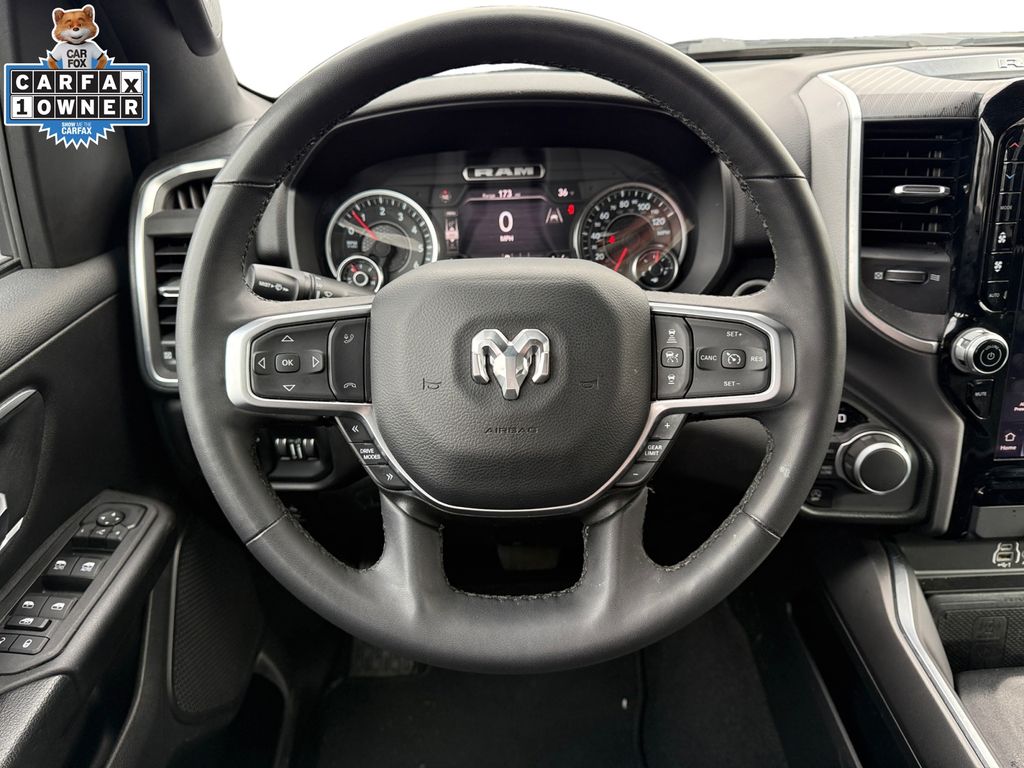 Big Horn Level 2 Equipment Group (115V Auxiliary Power Outlet, 115V Auxiliary Rear Power Outlet, 12" Touchscreen Display, 2nd Row In Floor Storage Bins, 400W Inverter, 4G LTE Wi-Fi Hot Spot, 9 Amplified Speakers w/Subwoofer, Air Conditioning ATC w/Dual Zone Control, Apple CarPlay, Auto Power-Folding Mirrors, Auto-Dimming Exterior Driver Mirror, Auto-Dimming Rear-View Mirror, Black Exterior Mirrors, Black Premium Power Mirrors, Cluster 7.0" TFT Color Display, Configurable Drive Mode, Connected Travel & Traffic Services, Connectivity - US/Canada, Convex Wide-Angle Exterior Mirror Insert, Exterior Mirrors Courtesy Lamps, Exterior Mirrors w/Heating Element, Exterior Mirrors w/Supplemental Signals, Glove Box Lamp, Google Android Auto, GPS Antenna Input, GPS Navigation, HD Radio, Heated Front Seats, Heated Steering Wheel, Integrated Voice Command w/Bluetooth, Leather Wrapped Steering Wheel, LED Dome Lamp w/On/Off Switch, LED Footwell Lighting, Media Hub w/2 Charge Only USBs, Overhead LED Lamps, Power 2-Way Driver Lumbar Adjust, Power Adjust 8-Way Driver Seat, Power Adjustable Pedals, Premium Overhead Console, Radio: Uconnect 5 Nav w/12.0" Display, Rear Power Sliding Window, Rear Window Defroster, Remote Tailgate Release, Security Alarm, SiriusXM w/360L, Steering Wheel Mounted Audio Controls, Sun Visors w/Illuminated Vanity Mirrors, Universal Garage Door Opener, and USB Host Flip), Quick Order Package 21Z Big Horn, FCA US LLC Certified Pre-Owned Certified, 3 Rear Seat Head Restraints, 4 Way Front Headrests, Bucket Seats, D